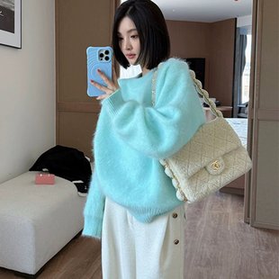 针织打底衫 品牌高级感羊毛衫 女半高领宽松毛衣秋冬加厚羊绒长袖