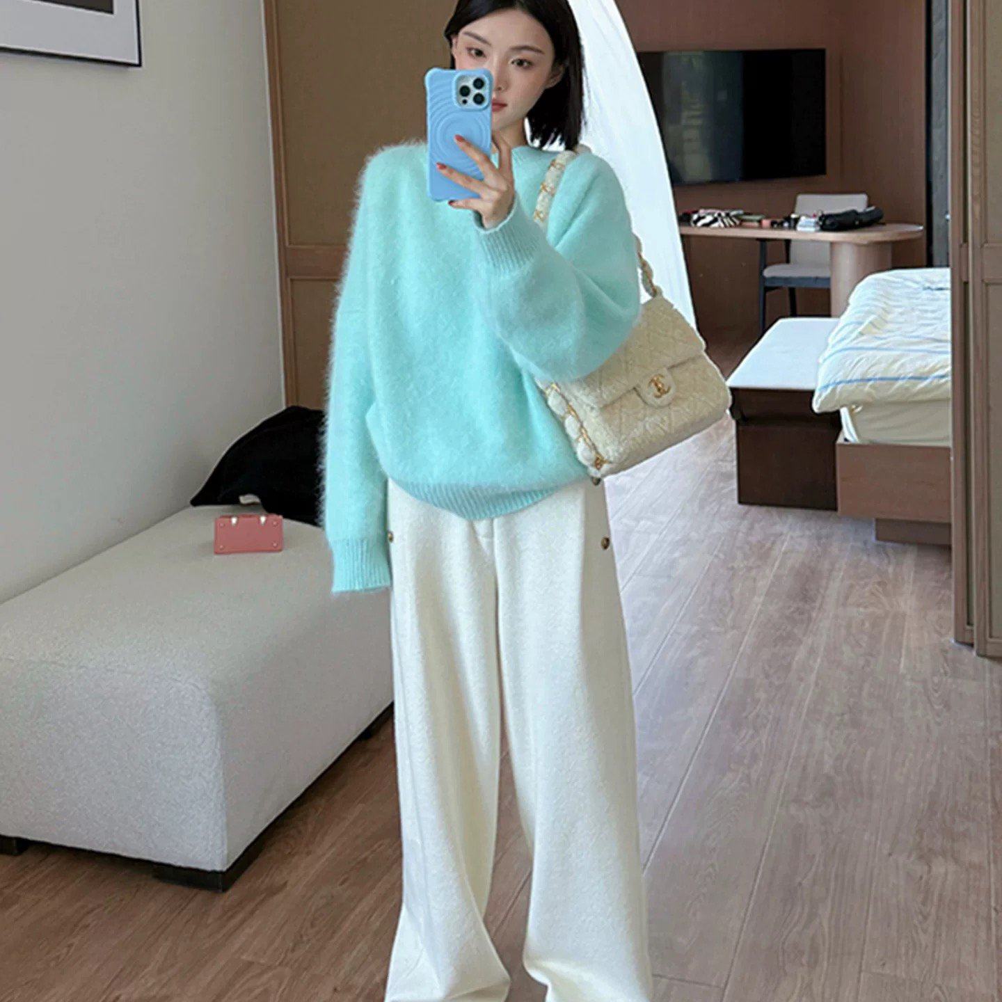 女纯羊绒毛衣针织打底衫 气质美学 100%纯山羊绒开衫 修身 秋冬 法式