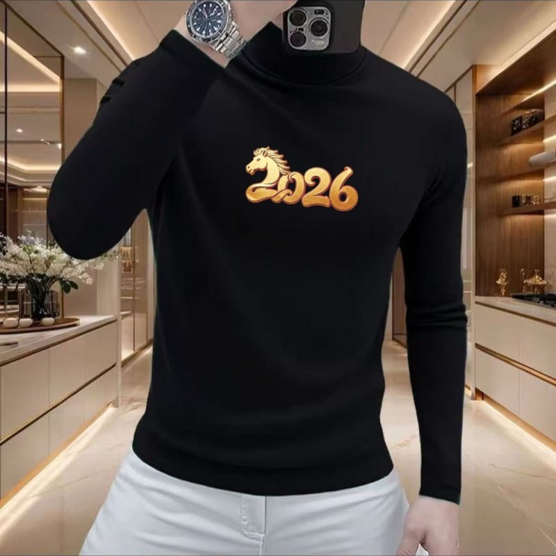 保暖上衣洋气 加厚男士 半高领双面德绒打底衫 男秋冬内搭2025年新款