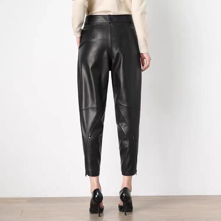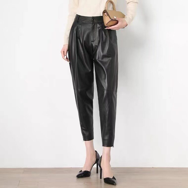 真皮高腰绵羊皮哈伦裤 女九分宽松裤 时尚 休闲裤 子 韩版 海宁新款