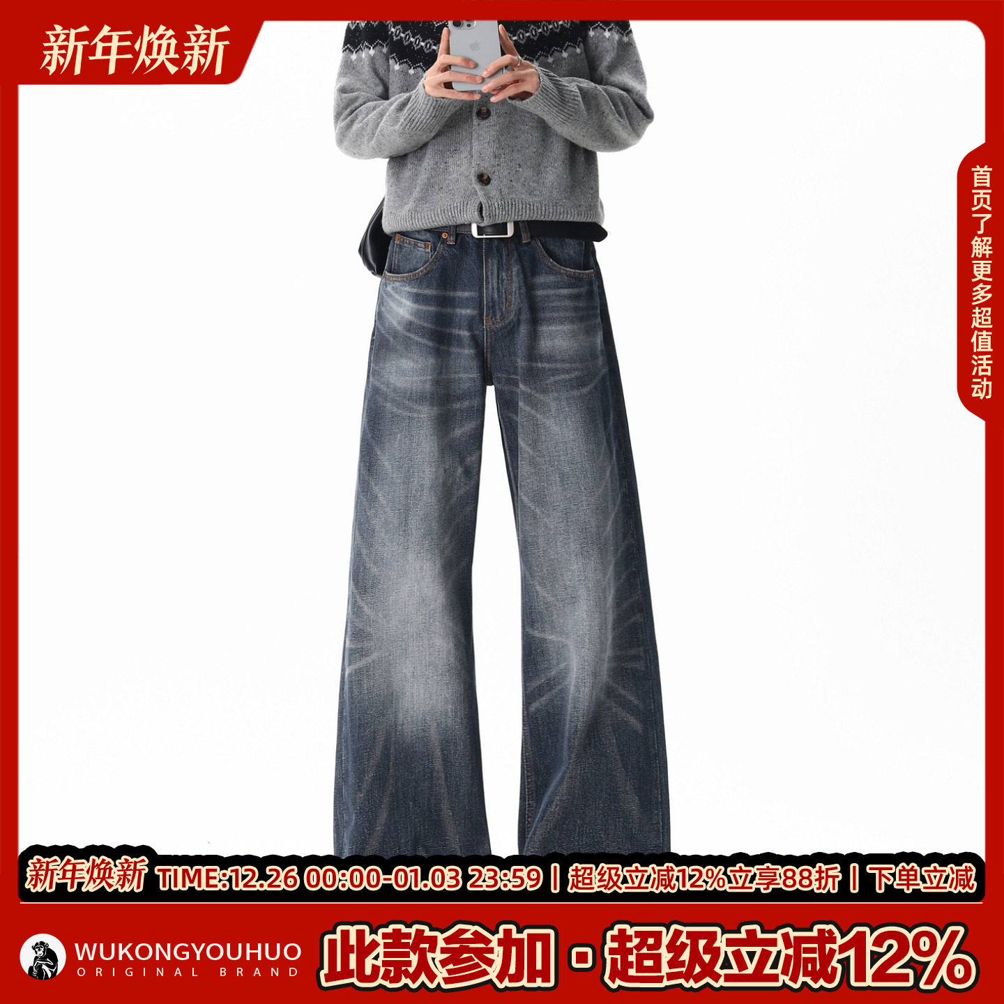 男街头宽松cleanfit百搭长裤 悟空有货潮牌美式 做旧水洗直筒牛仔裤