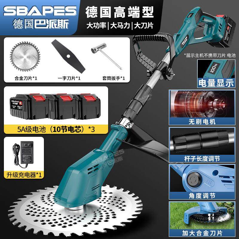 巴派斯充电式 电动割草机草坪打草机家用锂电除草机手持小麦收割