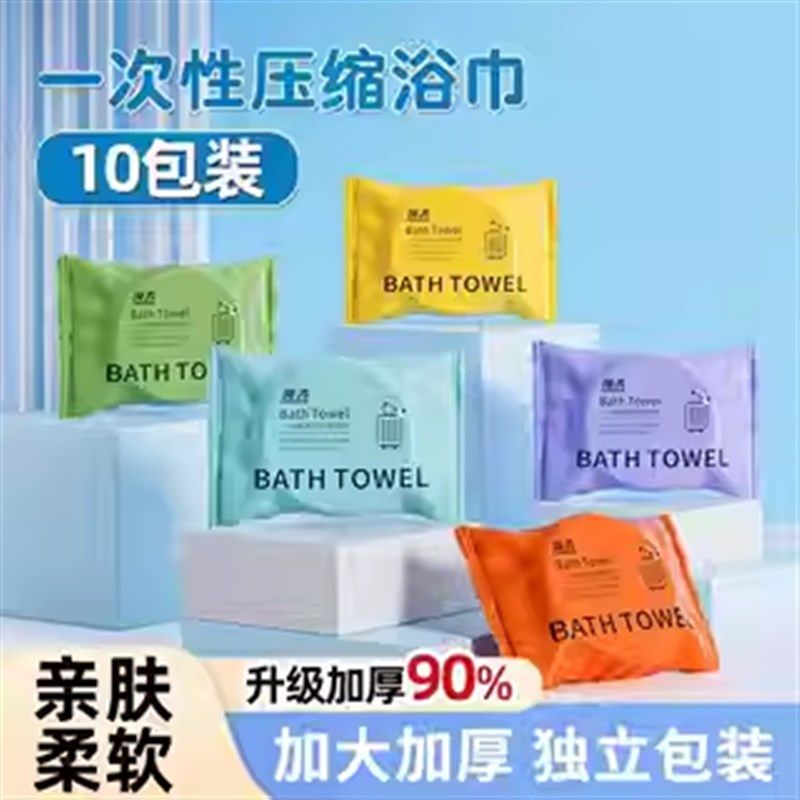 速发一次性浴巾毛巾缩压旅店5包装 酒行用品 纯棉加厚加大单独包装