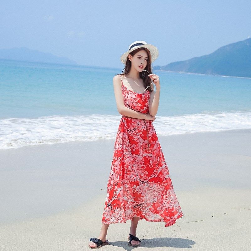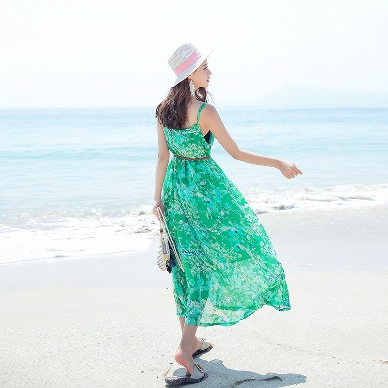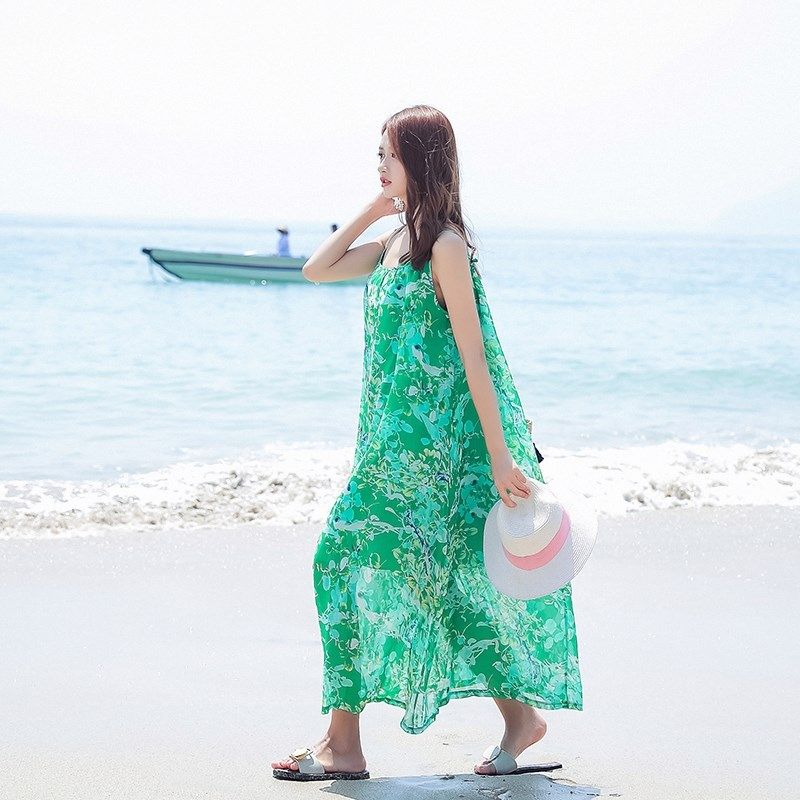 2024新款 胖妹妹显瘦雪纺连衣裙度假沙滩裙女 波西米亚长裙宽松大码