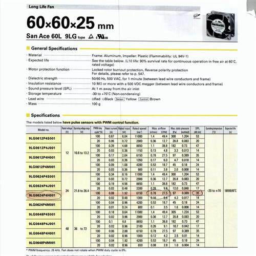 0.08A SANYO 24V 6025 4线PWM调速器6CM散热 9LG0624P4H001