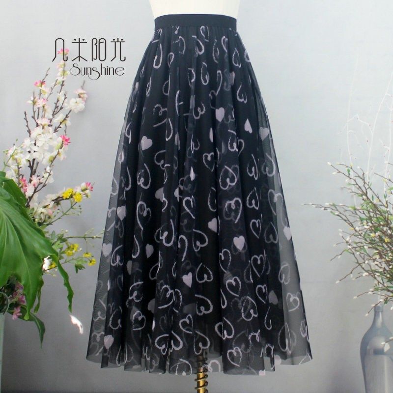 大摆飘逸网纱裙A字修身 仙女范半身裙 显瘦长裙 气质女装 春高档时尚