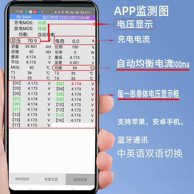 48V锂电池保护板24串600a带蓝牙控制三元 里磷酸铁智能bms主动均衡
