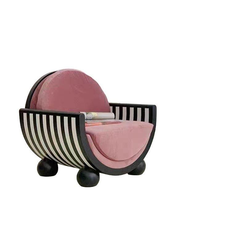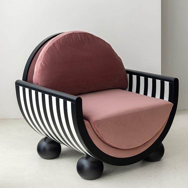 法厅式 中古风沙单人微笑布艺发复古客尚时休闲椅XAA诧寂黑白条纹