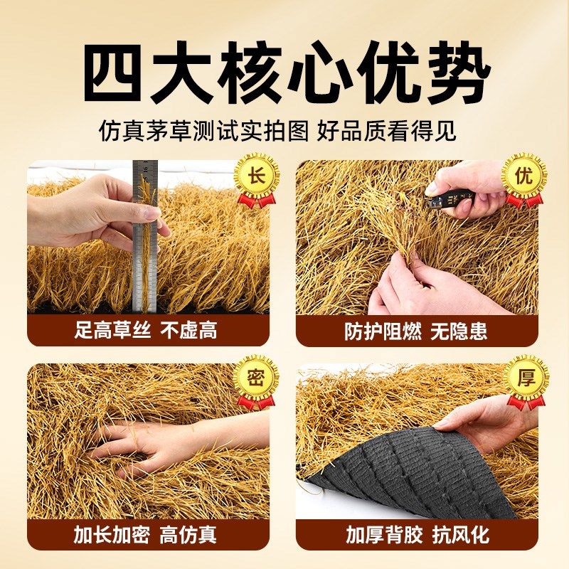 仿真茅草屋顶毛草隔热稻草木屋棚顶凉亭别墅地毯毛草屋檐瓦片装 饰