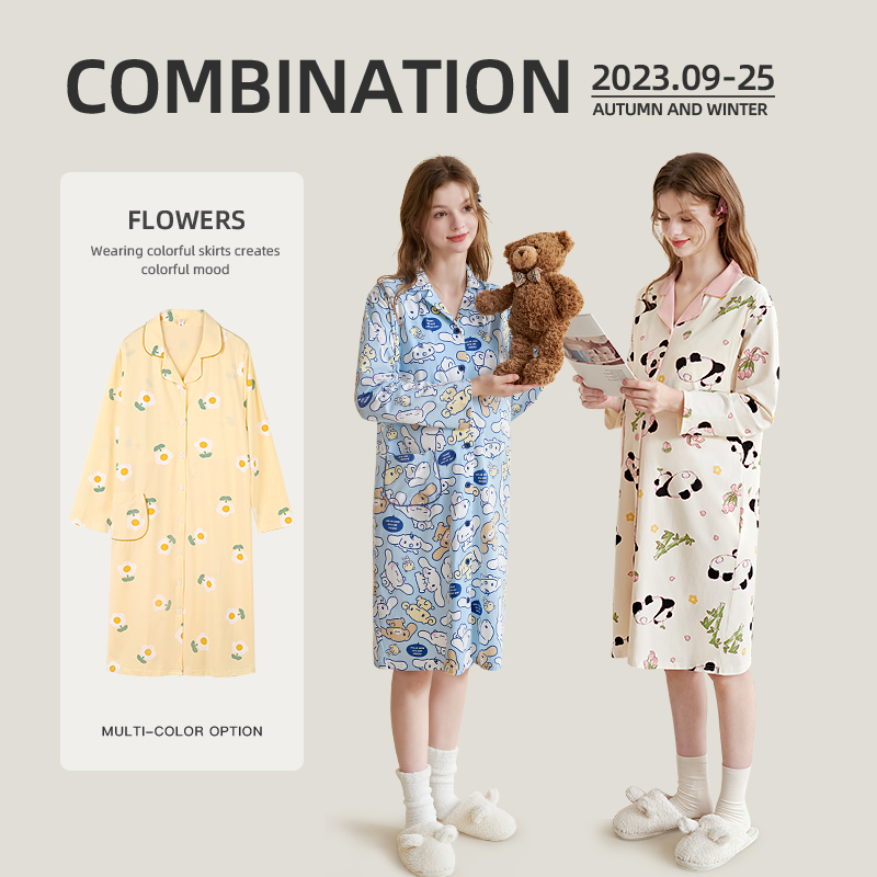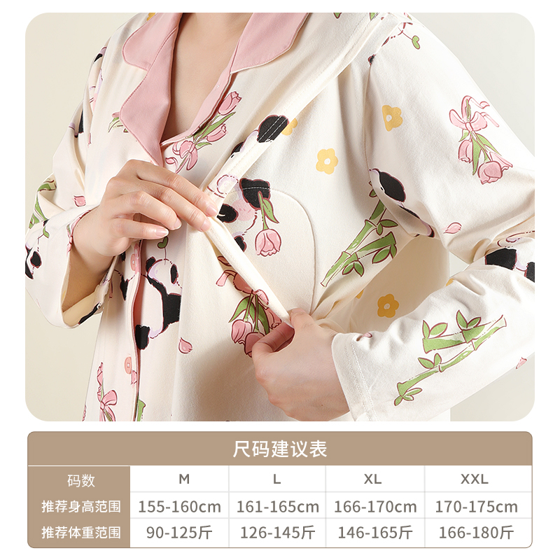 孕妇睡裙纯秋冬棉哺乳睡衣产后月M子服产妇产房待产洋装 带胸垫