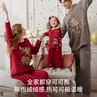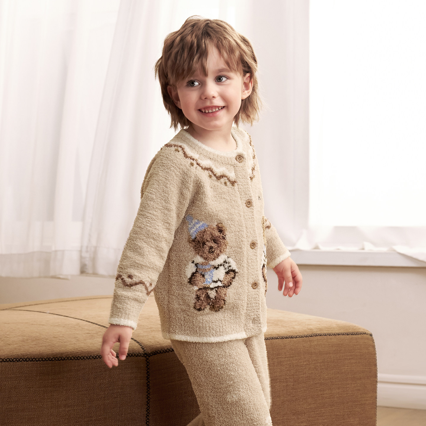 嫚熙儿童家居服半边绒男女宝宝加绒加厚秋冬保暖儿童睡衣套装 分体