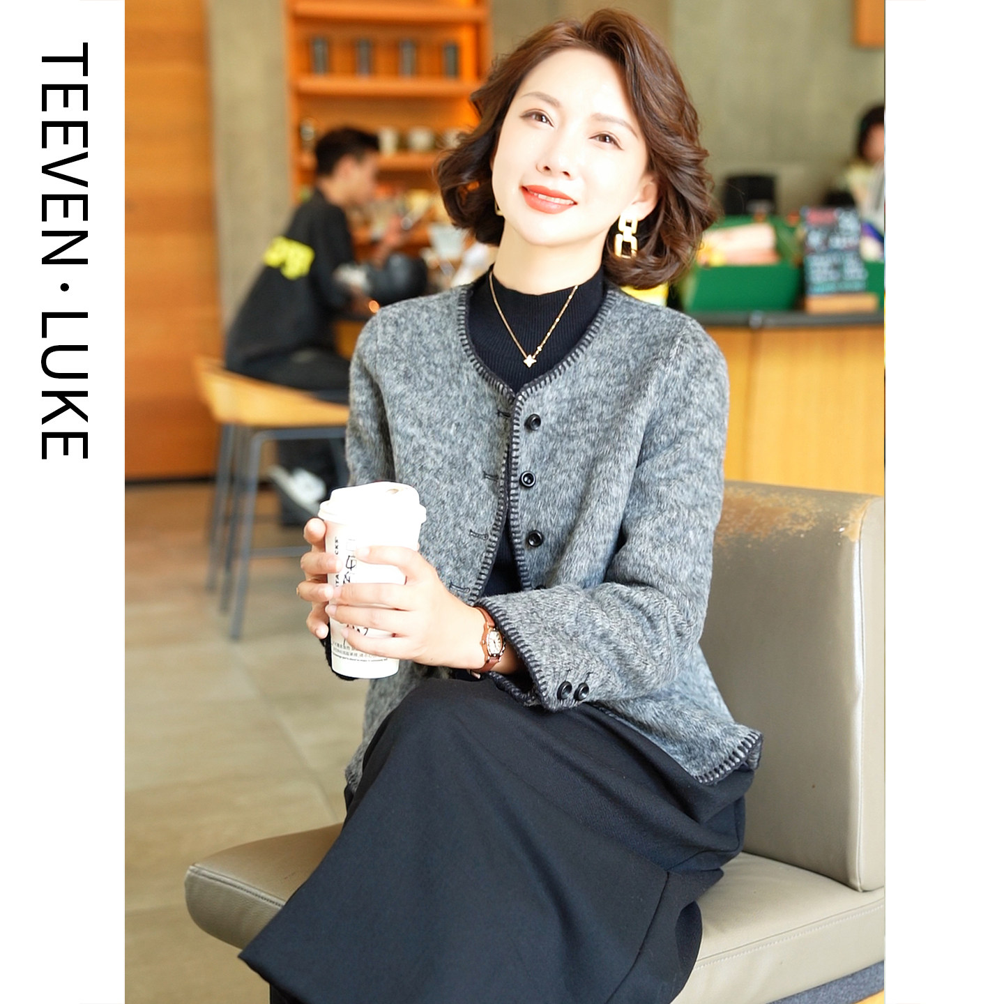 RUISHI芮时 100绵羊毛颗粒绒大衣毛绒毛呢外套女冬 雪国印象