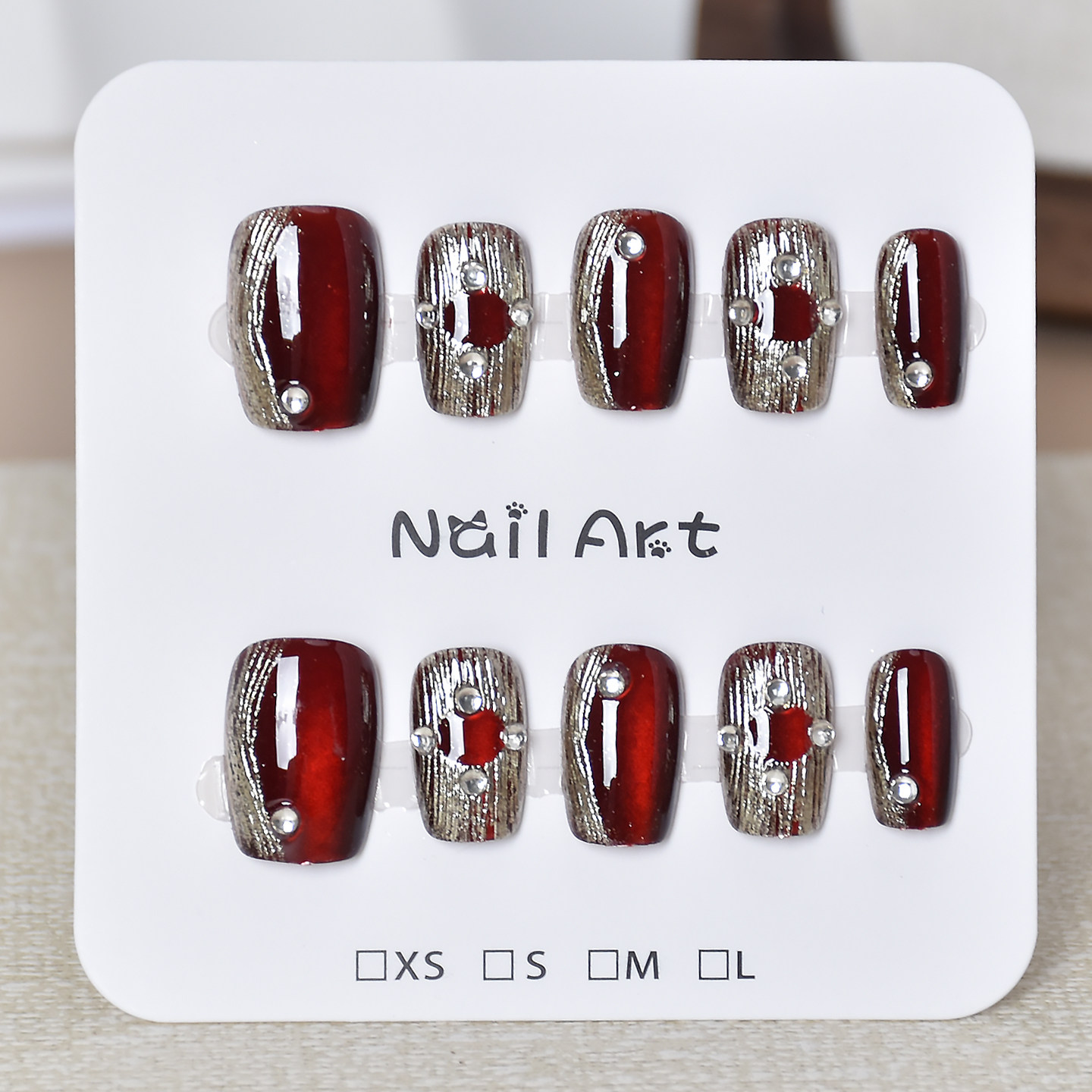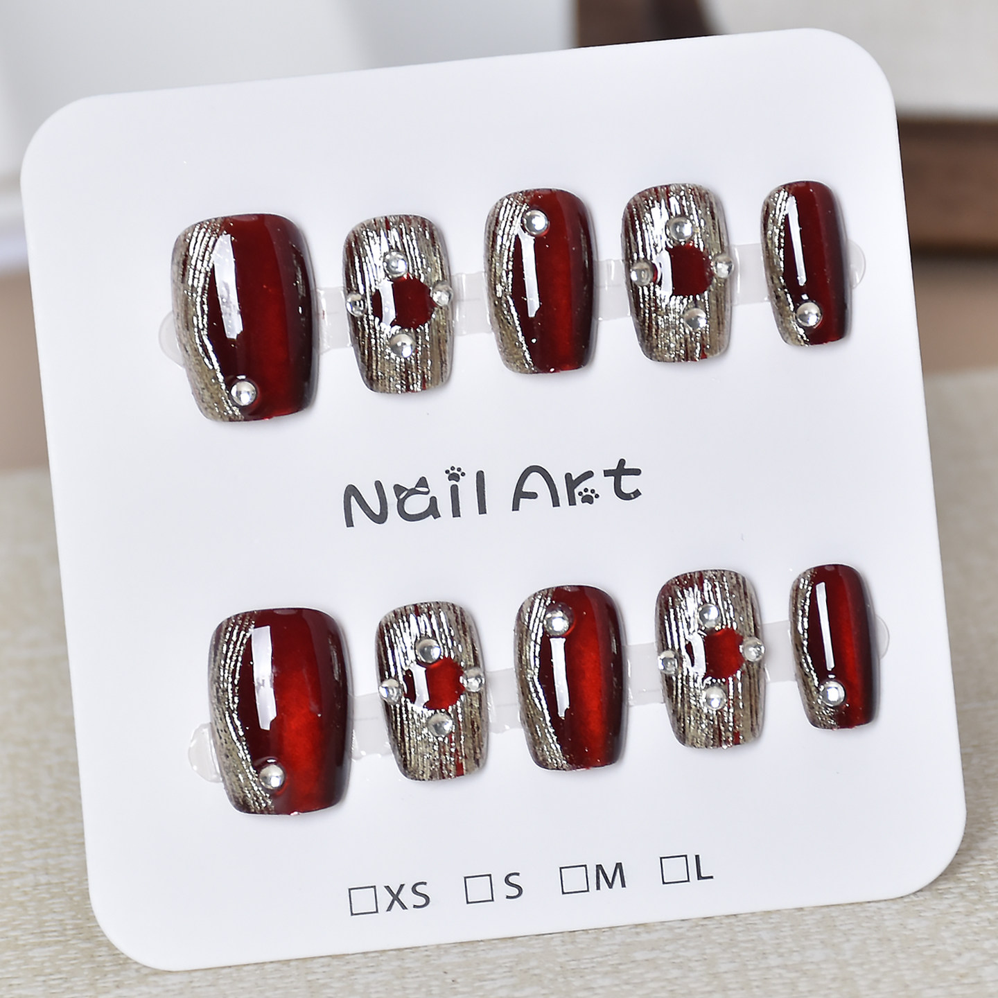 秋冬新款 裸色冰透玻璃珠猫眼美甲穿戴甲片气质百搭显白手工穿戴甲