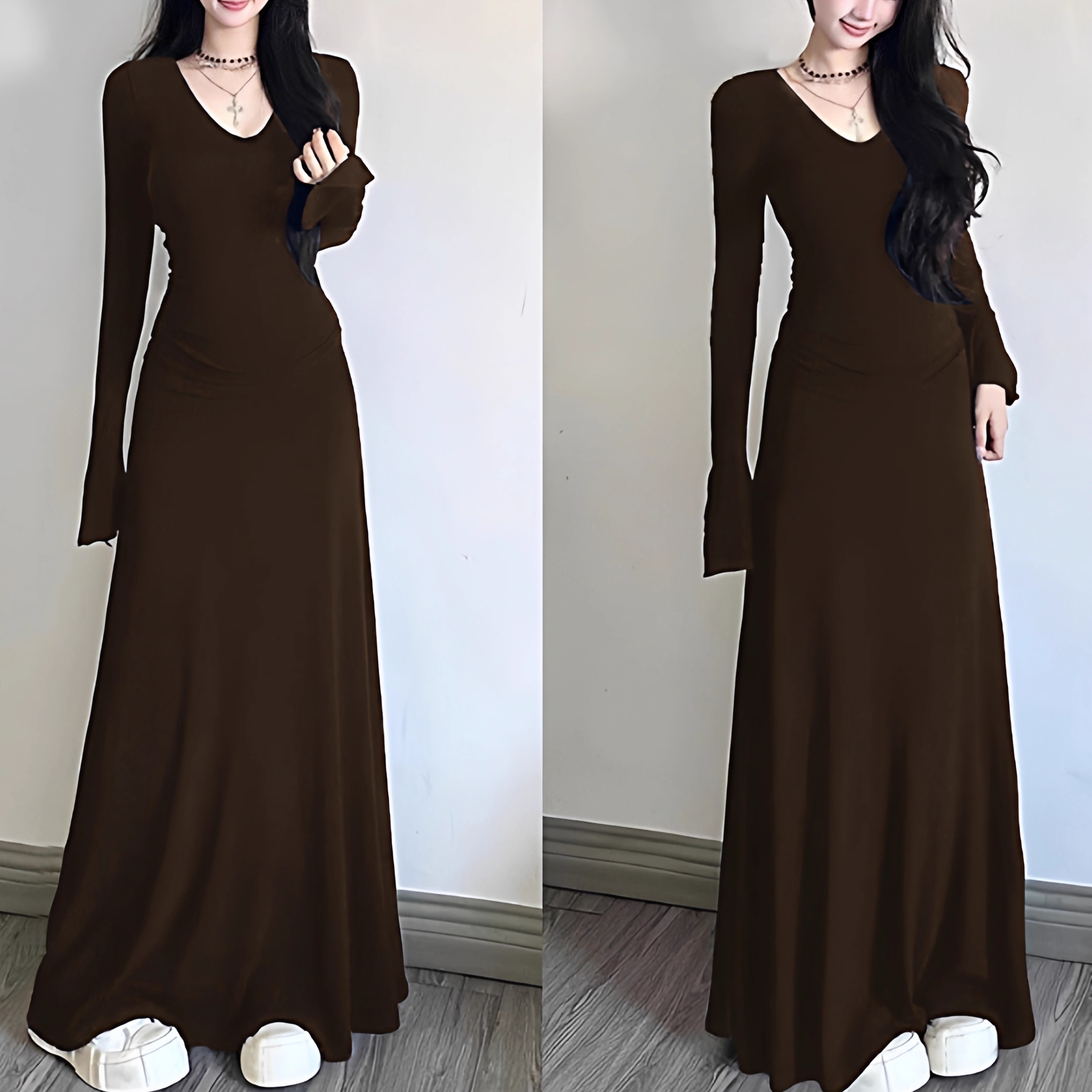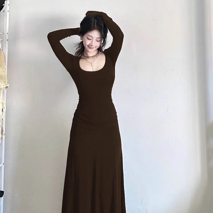 长款 2025秋修身 连衣裙女收腰显瘦V领气质针织裙 270克棉磨毛
