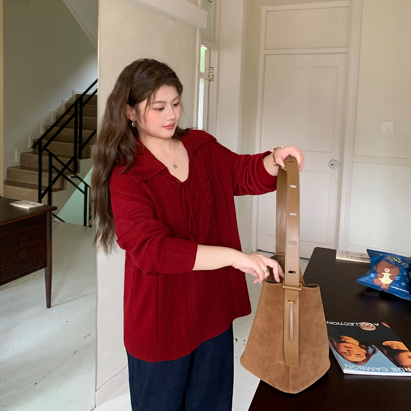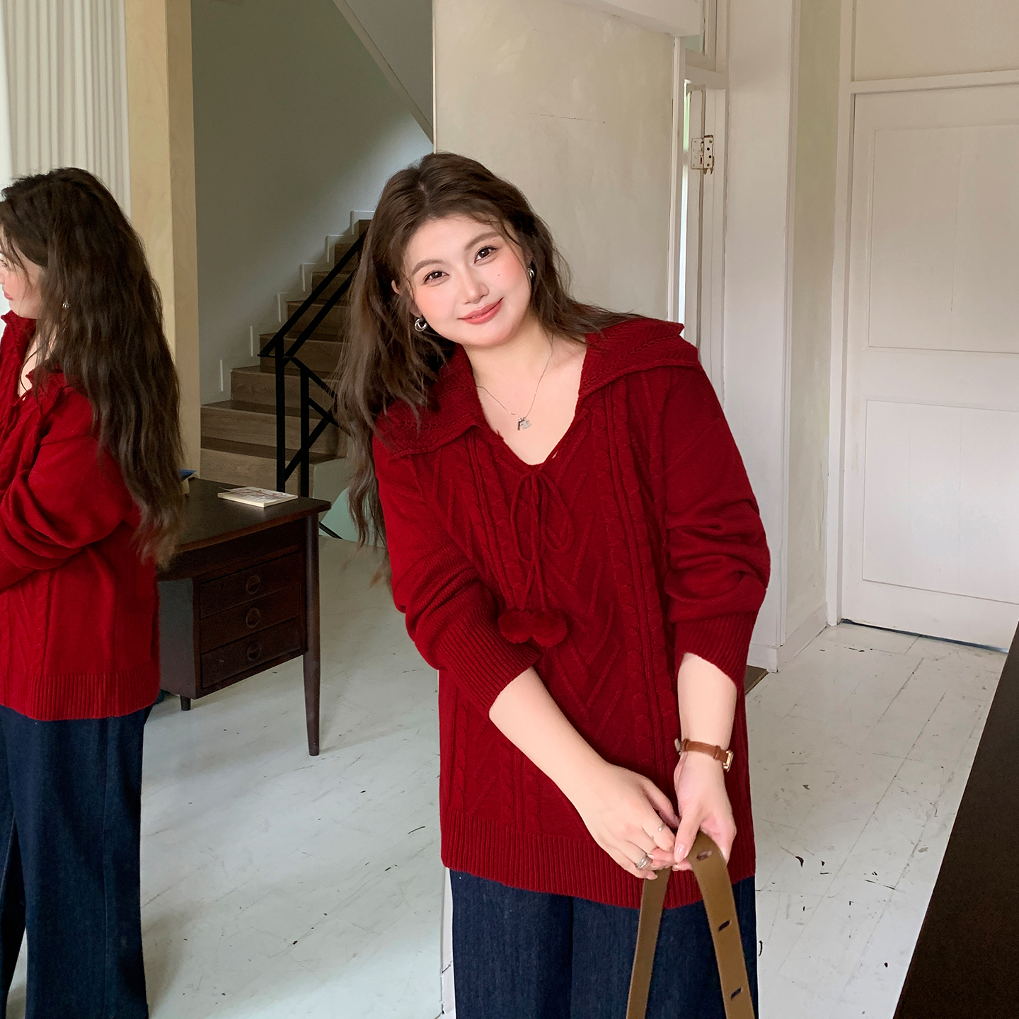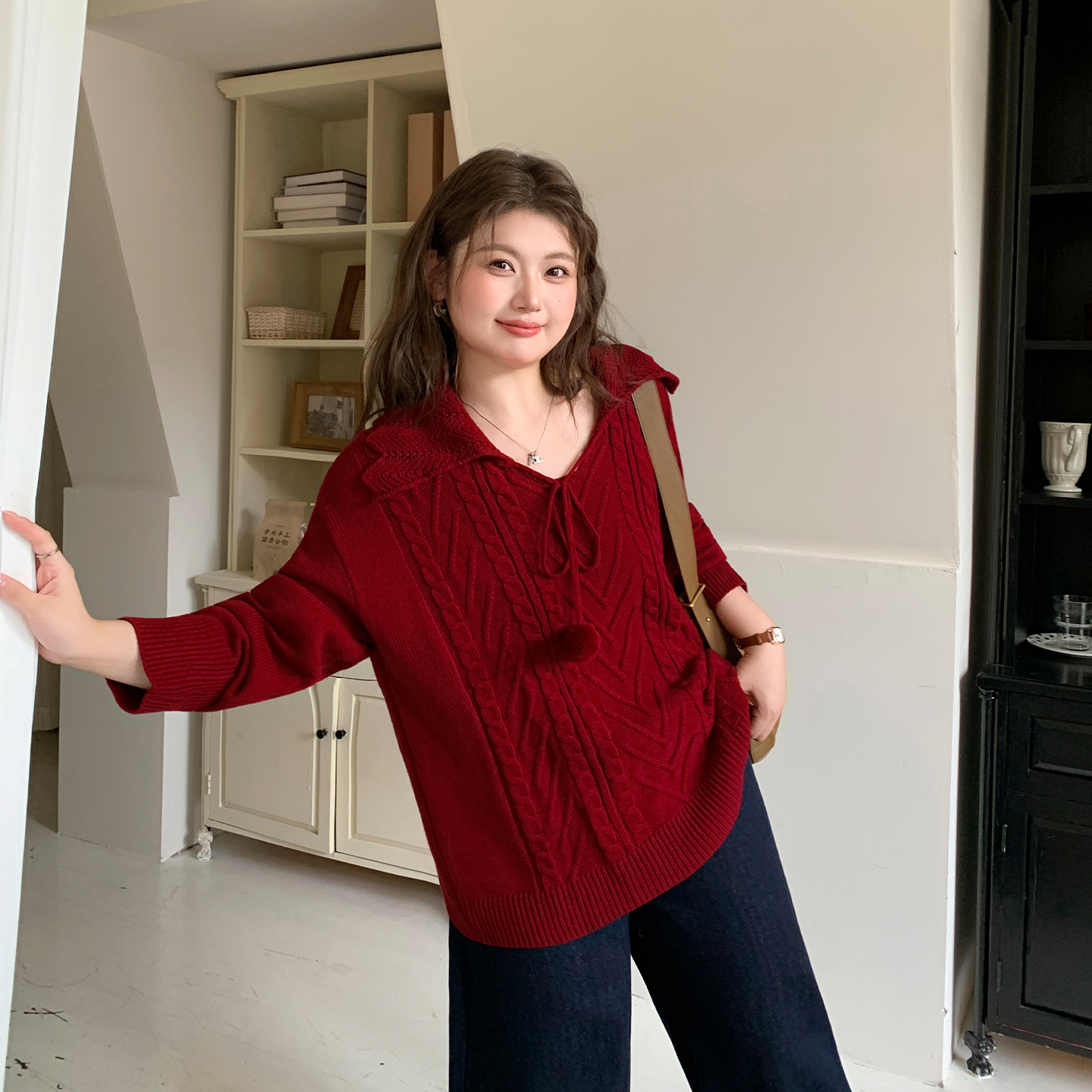 上衣胖mm秋冬 女木耳边半高领毛衣针织衫 加肥加大码 洋气内搭打底衫