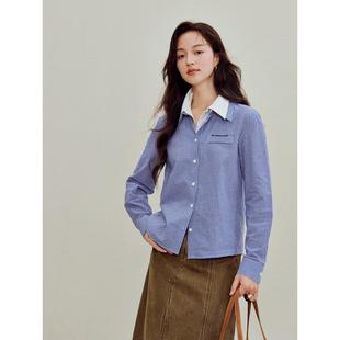 通勤减龄休闲衬衫 长袖 港风复古穿搭拼色翻领花色春秋季 趣味撞色