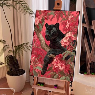黑豹装 饰画成品仿油画油彩艺术小众高级感动物设计卧室客厅摆挂画