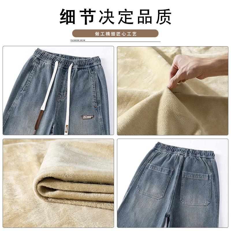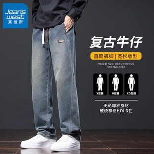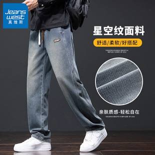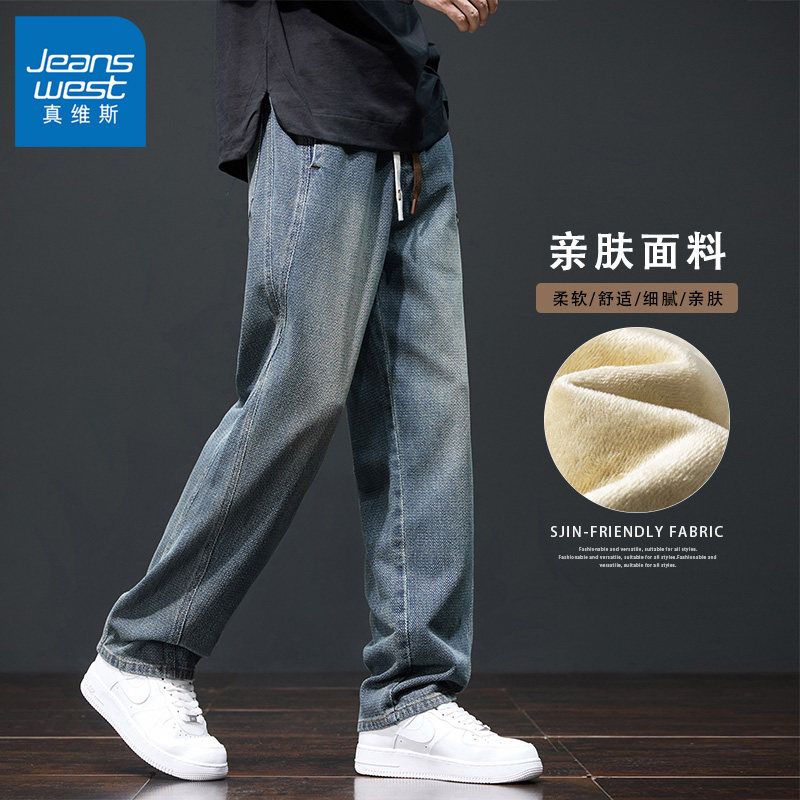 加绒加厚高街星空纹宽松直筒百搭休闲长裤 男士 牛仔裤 真维斯秋冬季