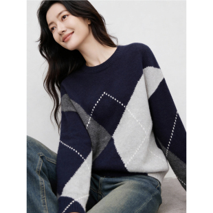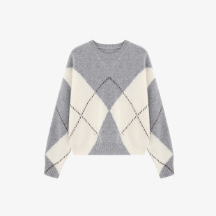 女士灰色高智风显瘦春装 新款 毛衣 春季 百家好复古菱格绵羊毛针织衫