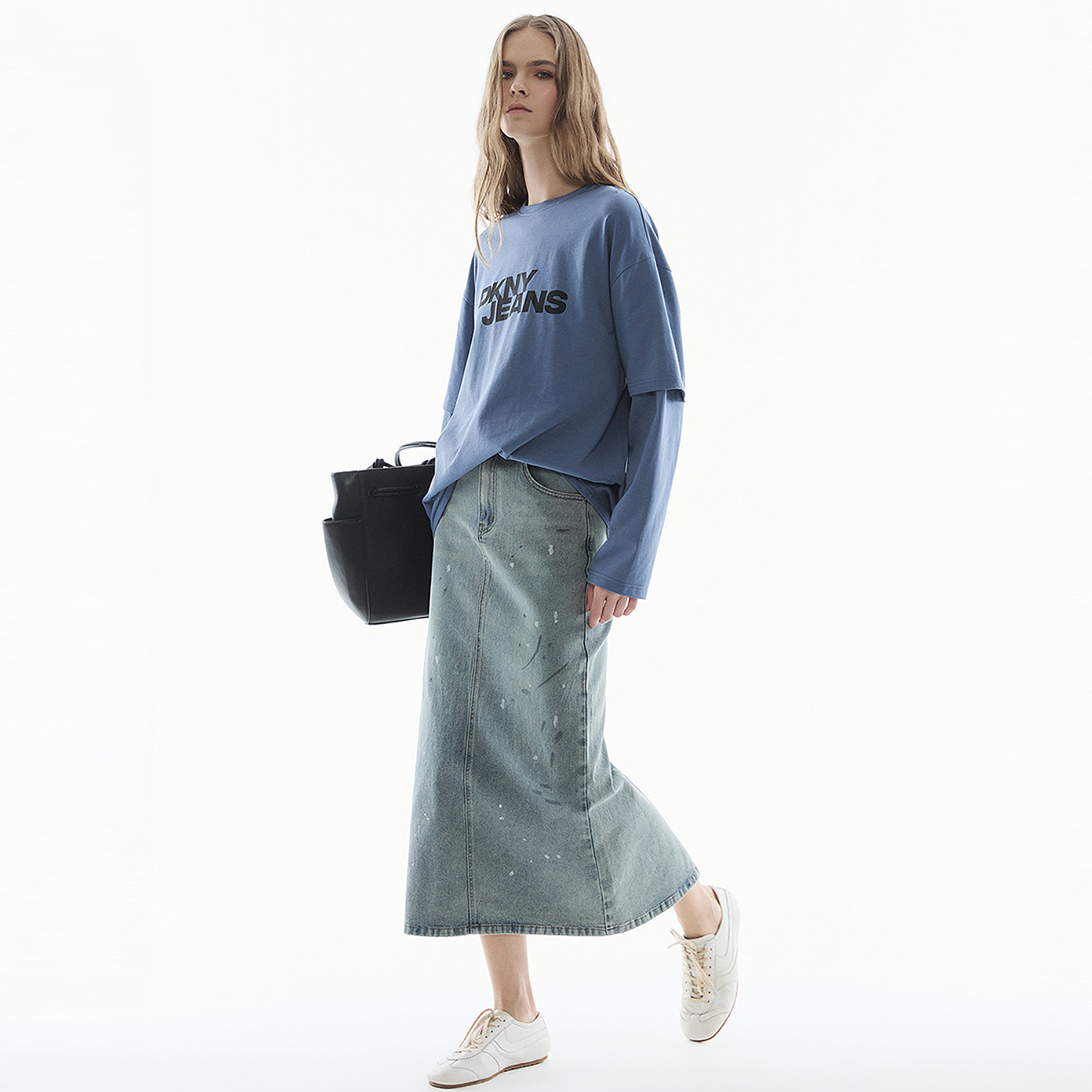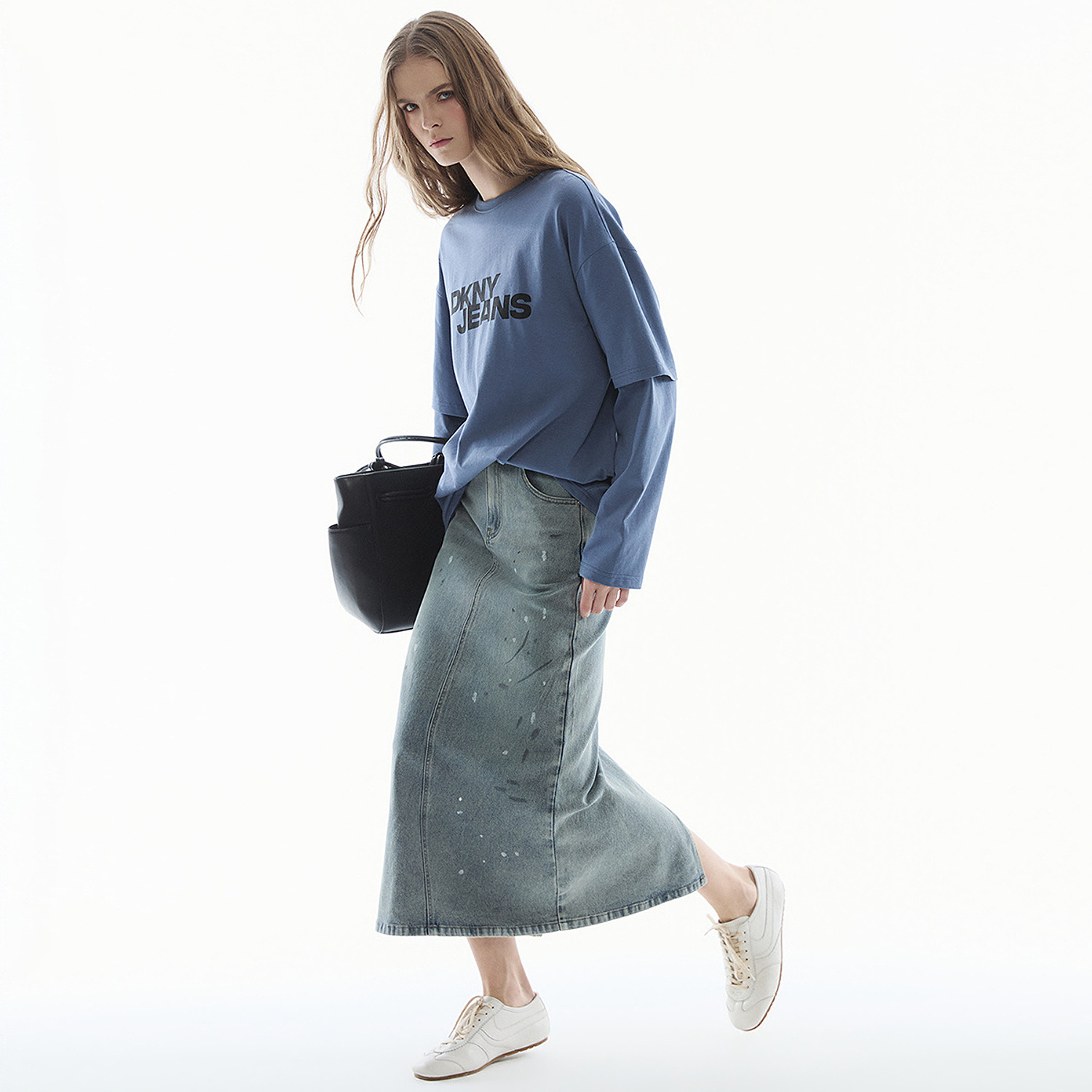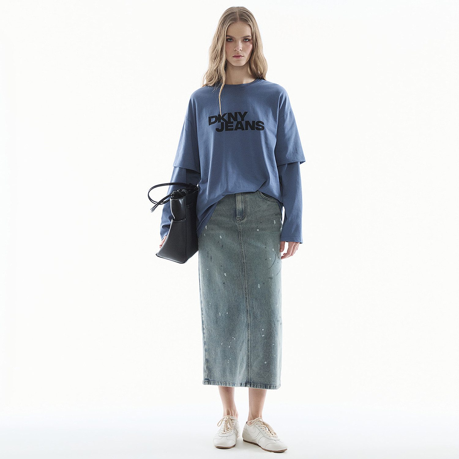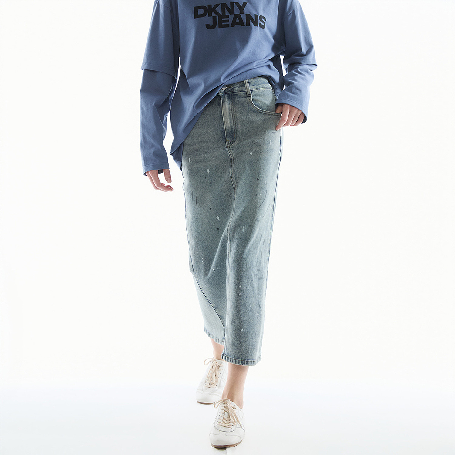 牛仔半身裙女直筒开叉时尚 新款 潮流浅蓝 JEANS唐可娜儿26夏季 DKNY