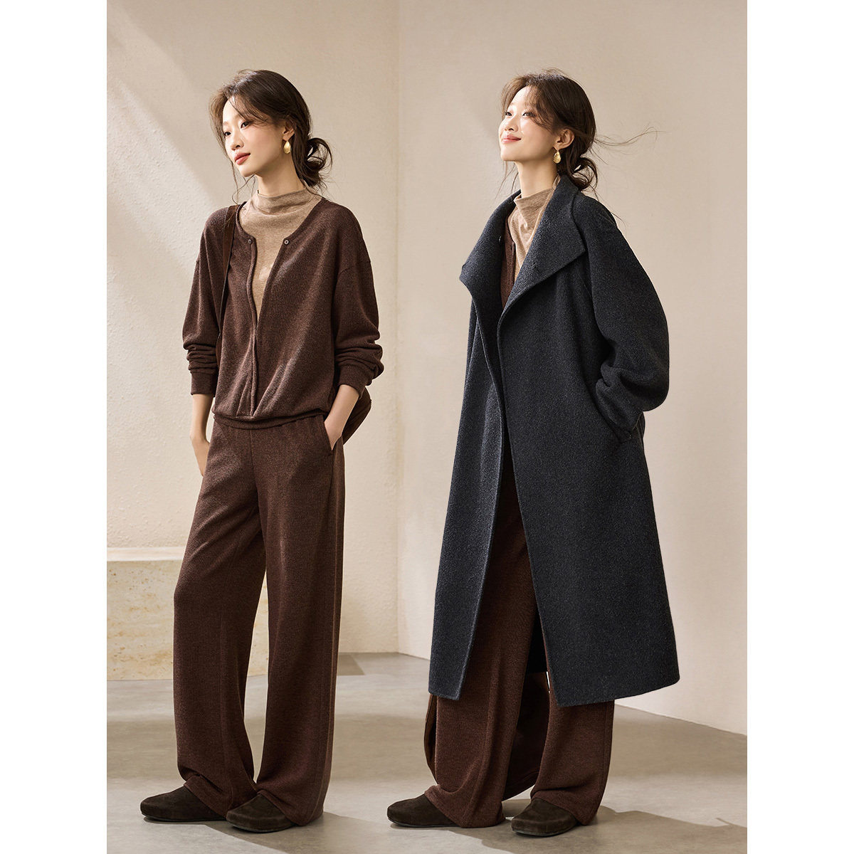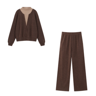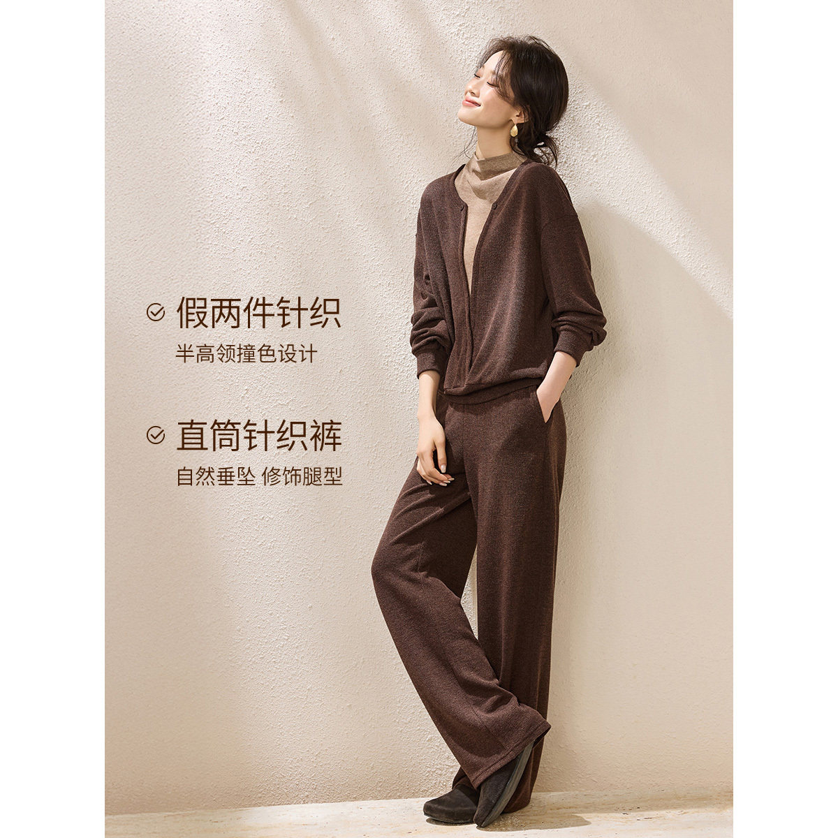 沫晗依美海军风两件套2025冬松弛感拼接V领撞色卫衣阔腿卫裤 套装