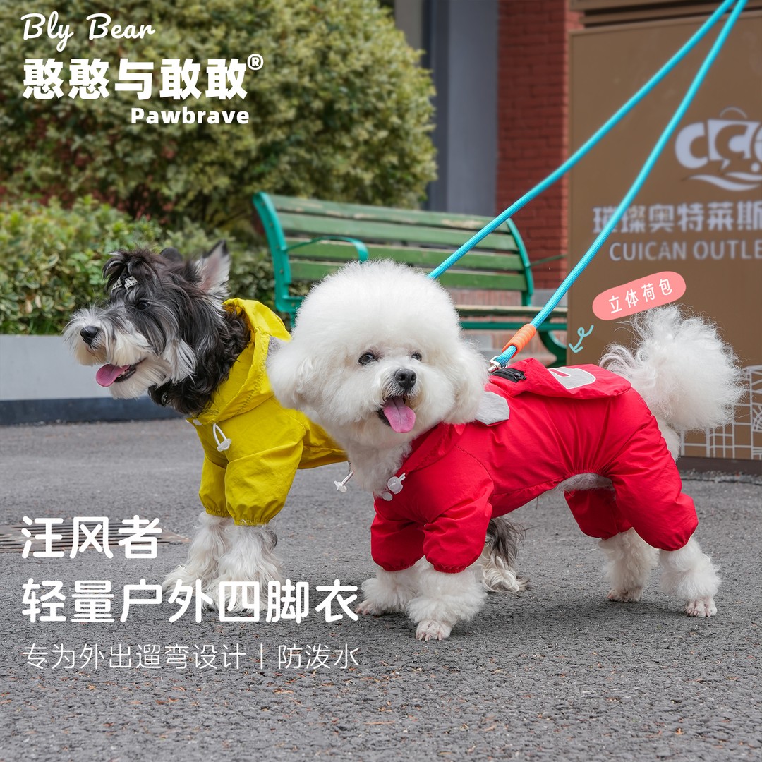 可牵引狗狗衣服秋冬四脚衣小型幼犬雪纳瑞比熊泰迪外出防脏冲锋衣