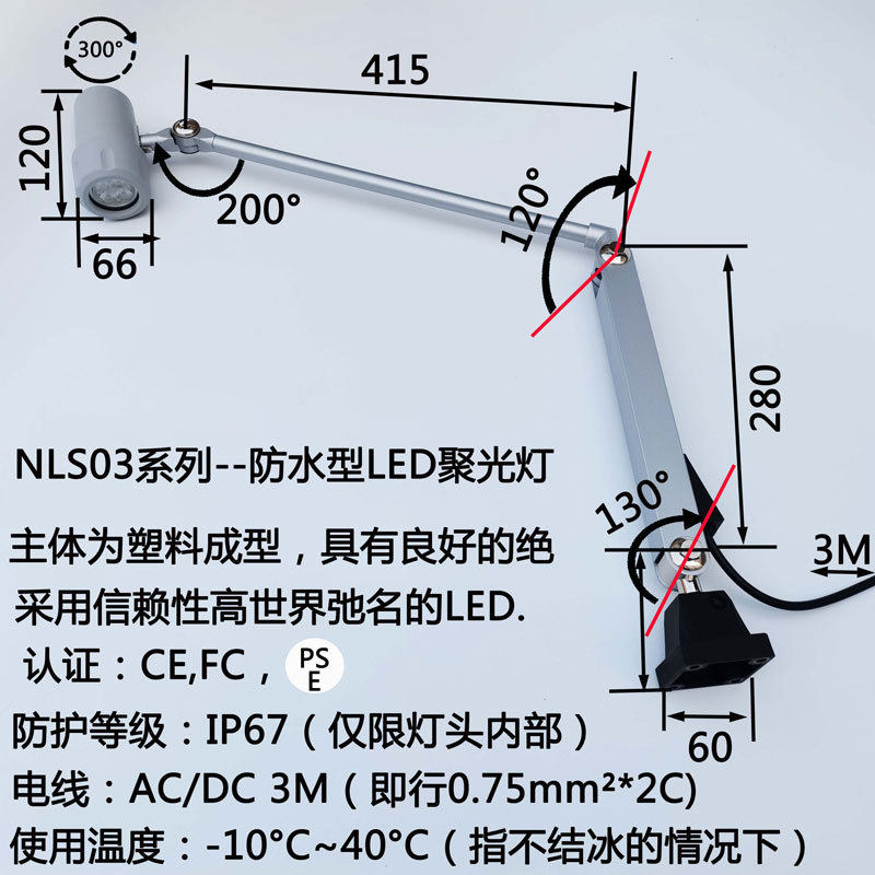 防水型LED机床工作灯聚光灯NLSM03C 日本日机NIKKI 含税原装