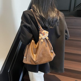 高级感小众复古托特包女新款 大容量软皮手提单肩包百搭机车包