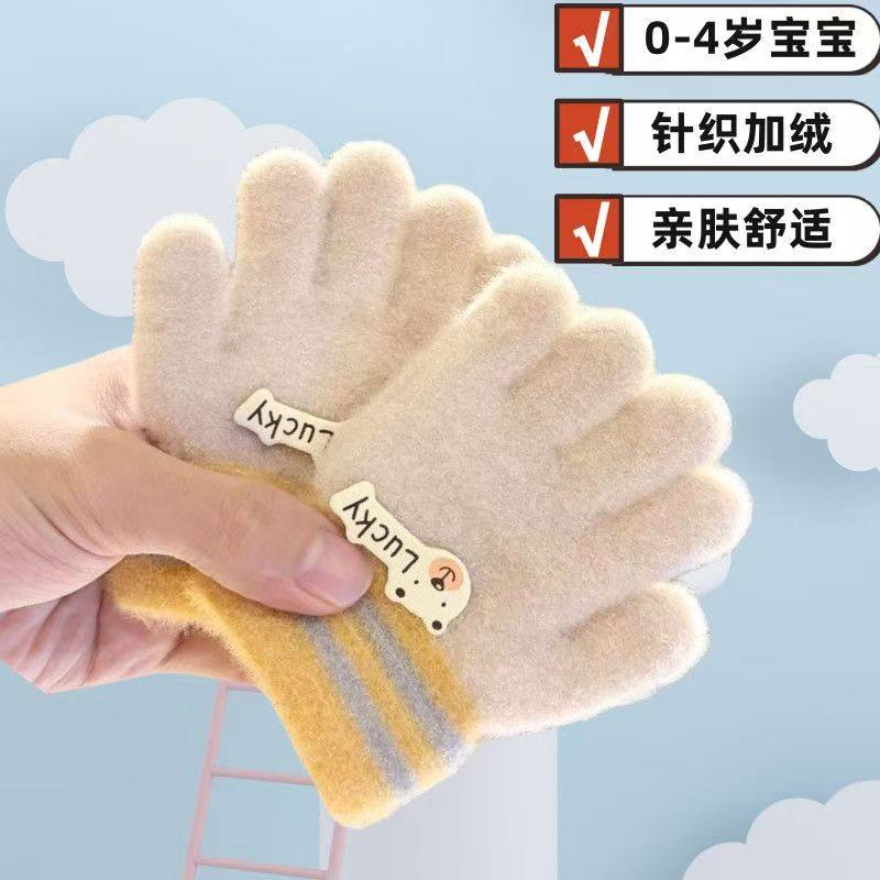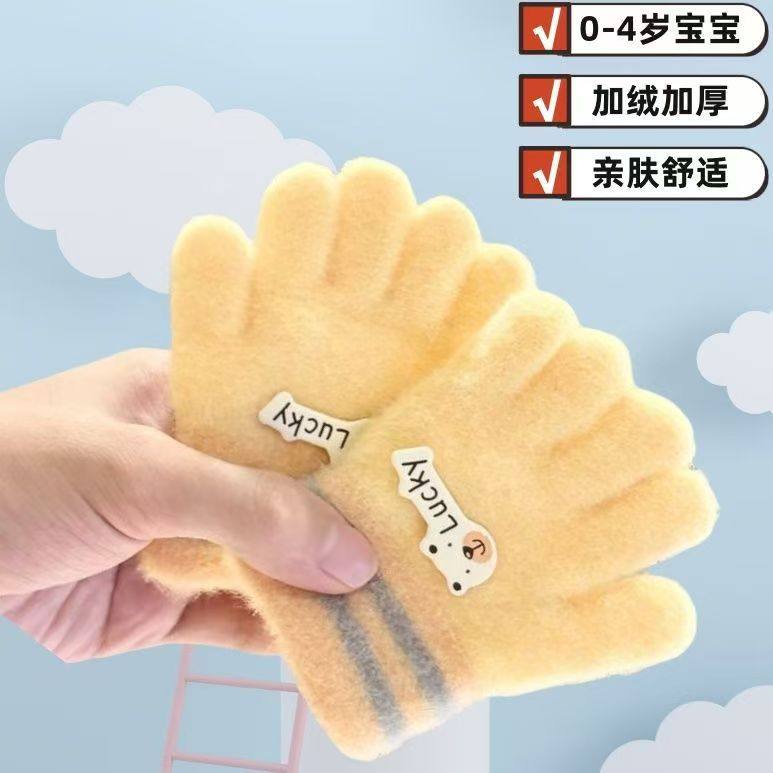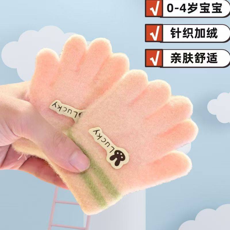 男童小孩防寒手套 3岁幼儿女童宝宝加绒加厚保暖翻盖手套秋冬季
