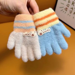 韩系可爱毛绒手套女2025新款 加厚保暖防寒露指可触屏手套学生 冬季