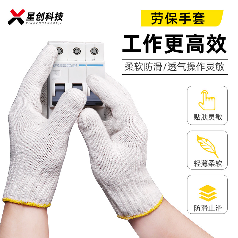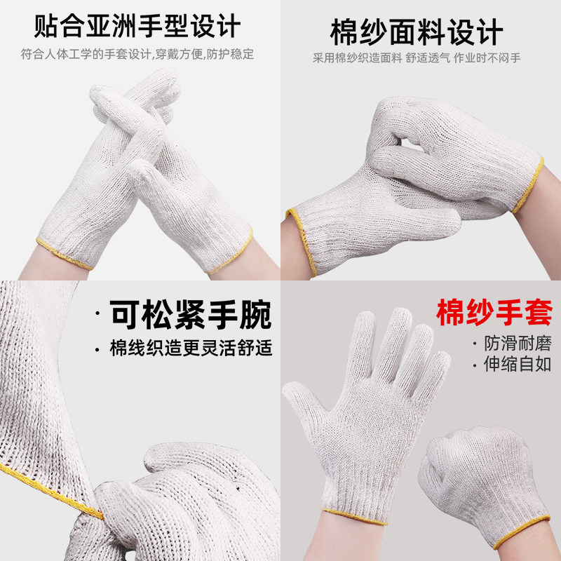 劳保手套加厚男女棉线手套耐磨防护工作干活常规款 防滑工作修车