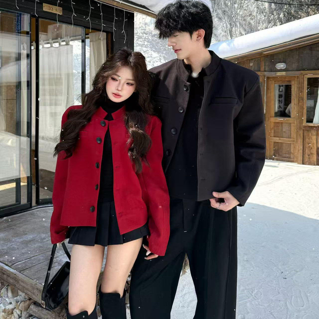 外套男春秋高级感痞帅西服国风中山装 垫肩西装 立领夹克 短款 新中式