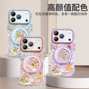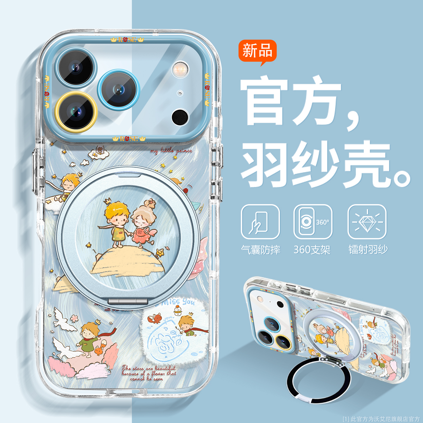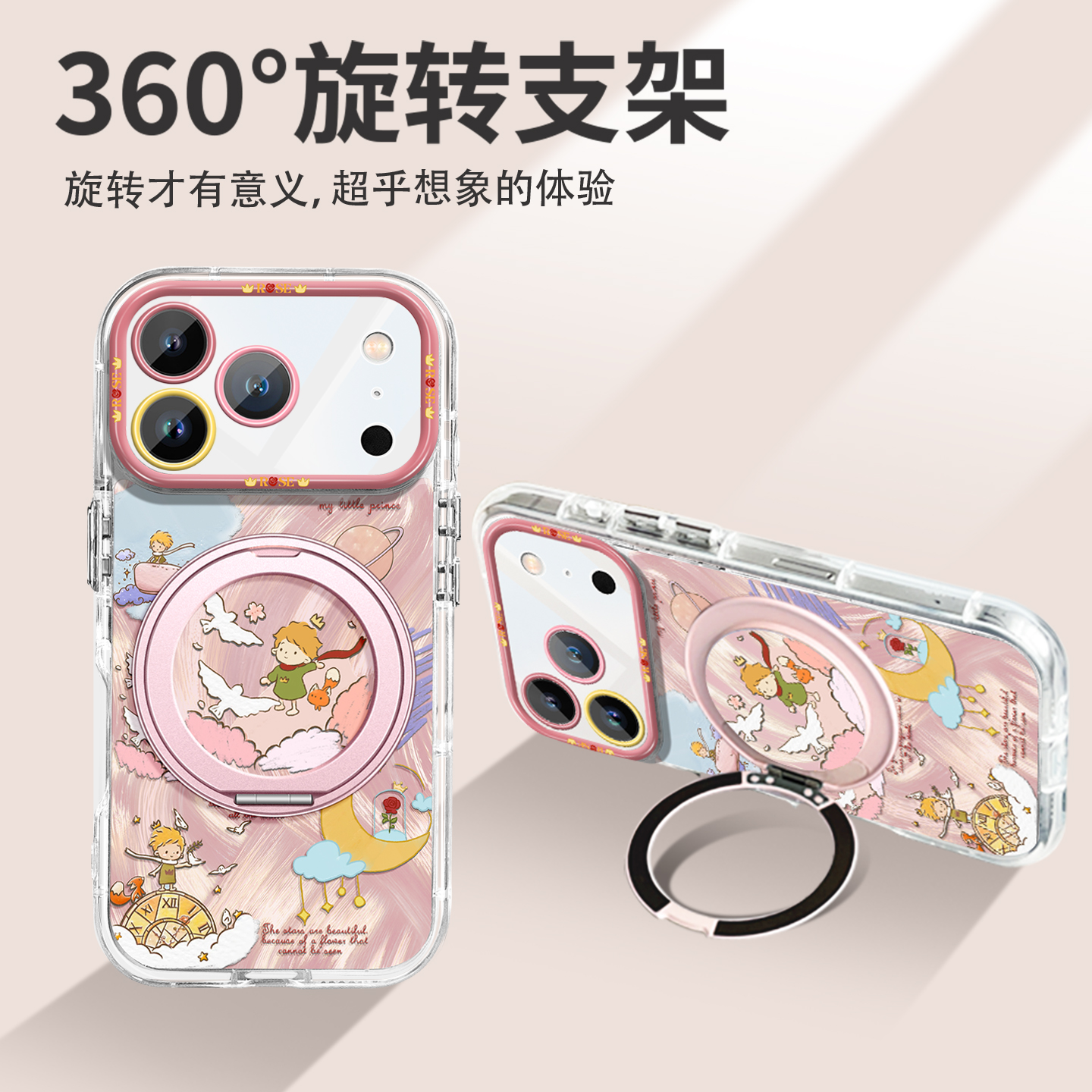 沃艾尼适用苹果17promax手机壳小王子iPhone17旋转支架16pro全包硅胶15plus卡通彩绘14情侣13手链12透明11潮