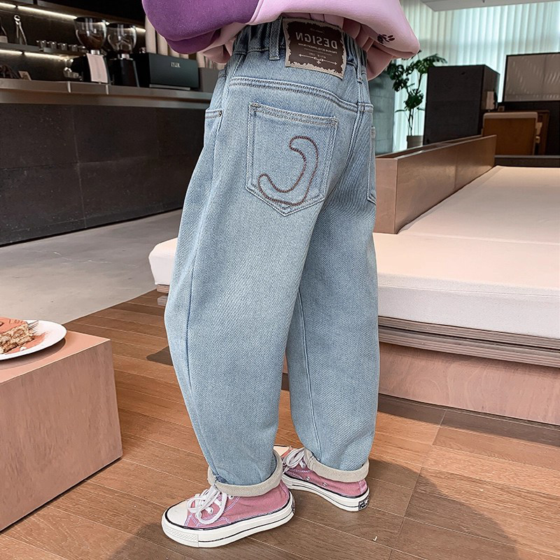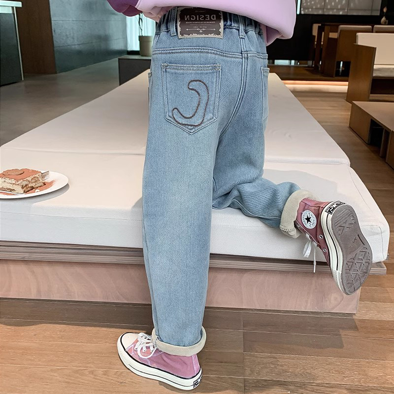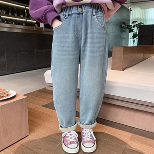 加绒宽松直筒阔腿裤 女童春秋牛仔裤 洋气冬装 中大儿童韩版 2025新款
