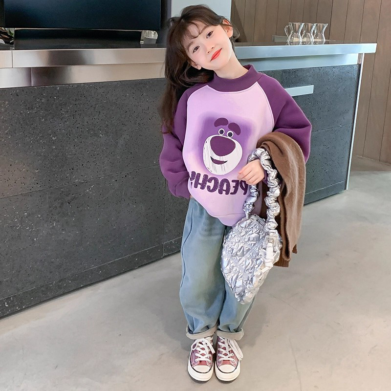 加厚青少年直筒裤 迪士尼女童牛仔裤 加绒秋冬2025新洋气儿童阔腿裤