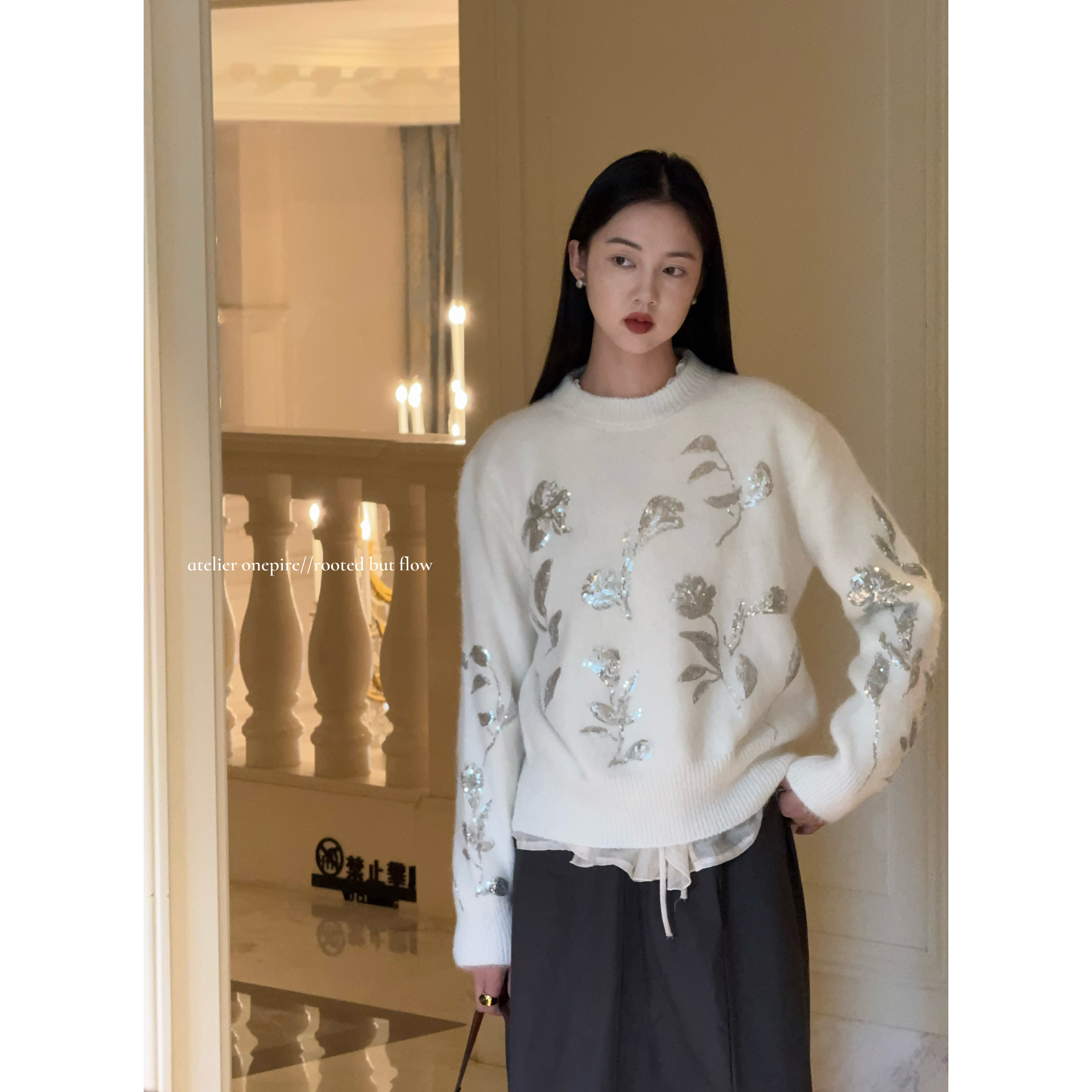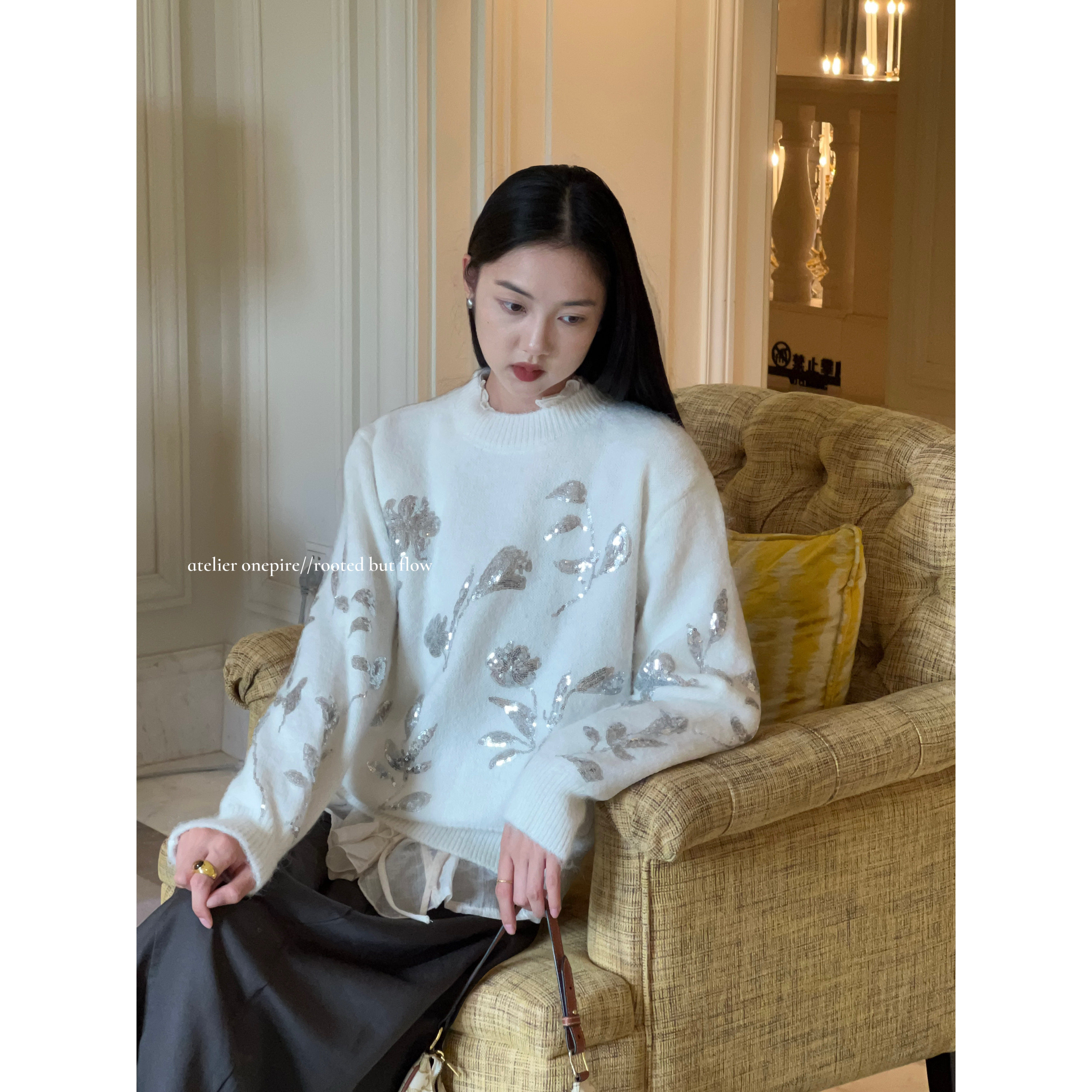女纯羊绒毛衣针织打底衫 气质美学 100%纯山羊绒开衫 修身 秋冬 法式