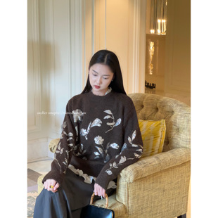 针织打底衫 品牌高级感羊毛衫 女半高领宽松毛衣秋冬加厚羊绒长袖