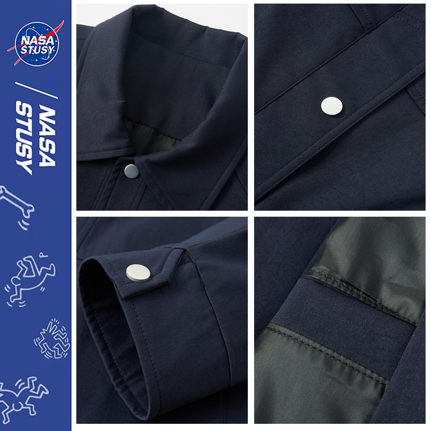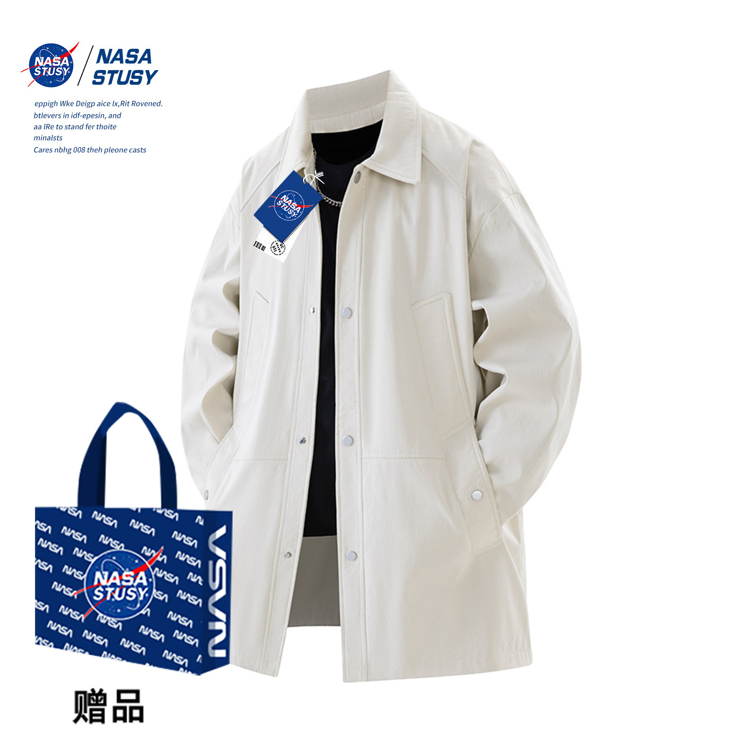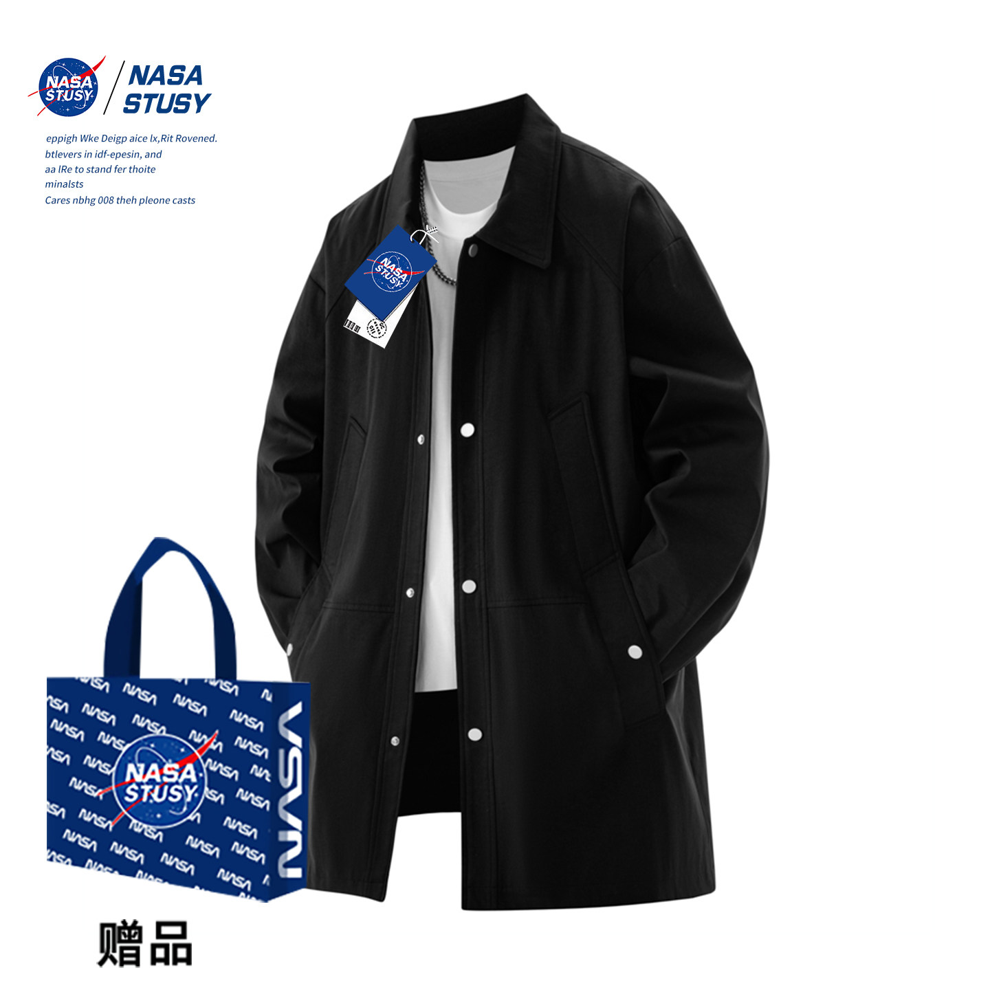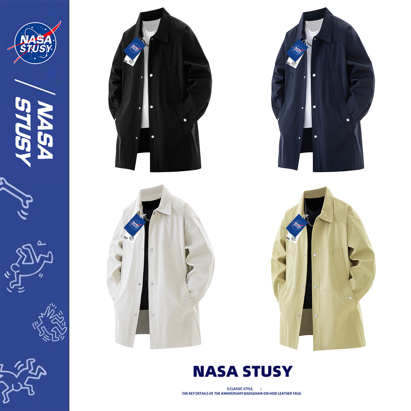 新款 复古2026春秋装 加肥加大码 男装 风衣外套 NASA 中长款 STUSY美式