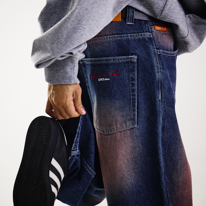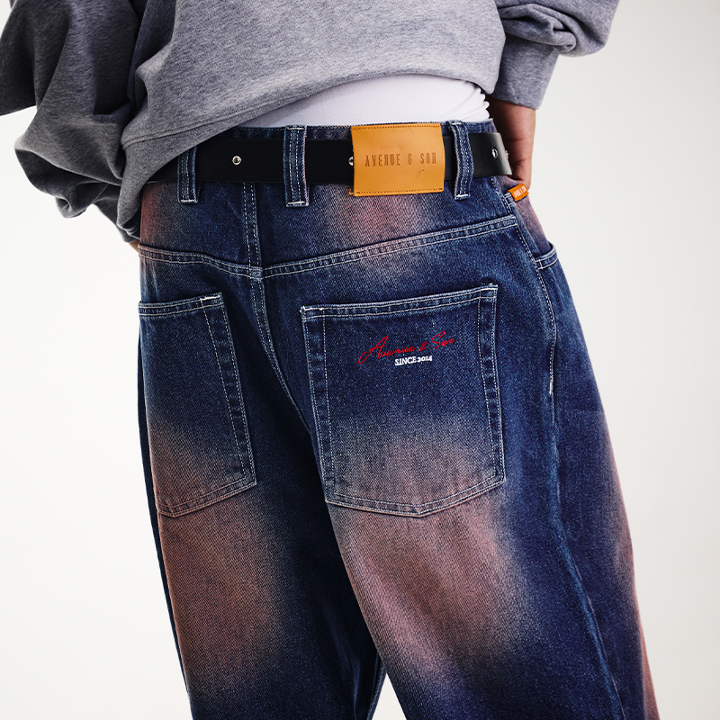 子男款 美式 微喇蓝牛裤 男cleanfit高街直筒修身 复古蓝色水洗牛仔裤