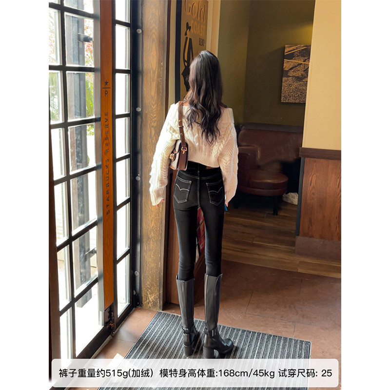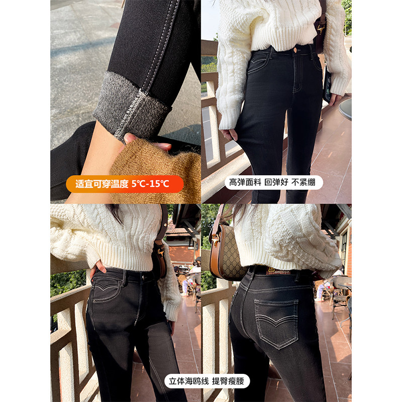 显瘦提臀保暖九分铅笔裤 女黑灰色修身 加绒高腰小脚牛仔裤 2025冬季