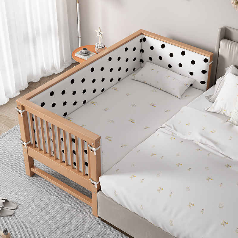 美木家居实榉木拼接床婴儿床拼接大床单人带护栏加宽床边床儿童床