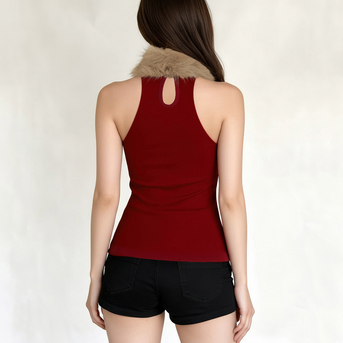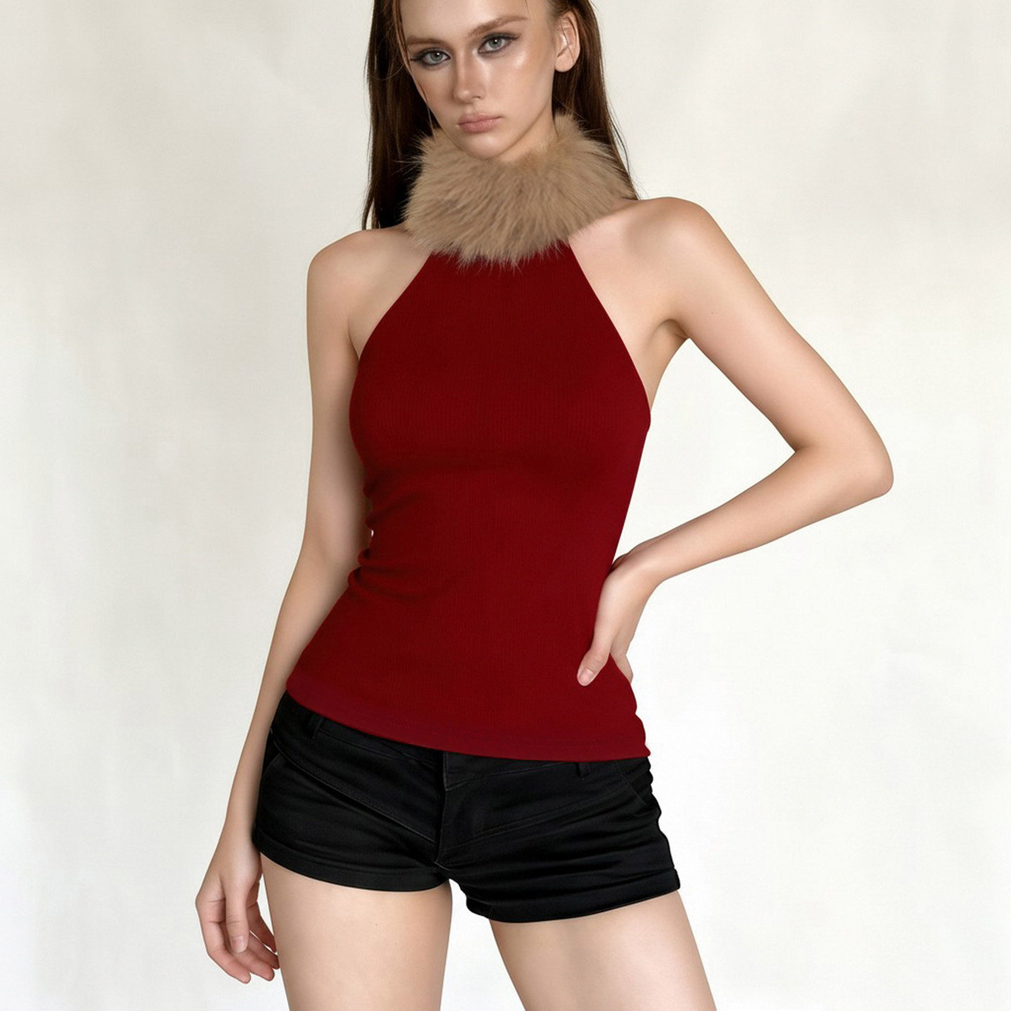 吊带上衣 毛毛高领挂脖背心气质高级感气质无袖 Amyway 复古辣妹