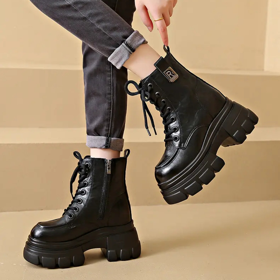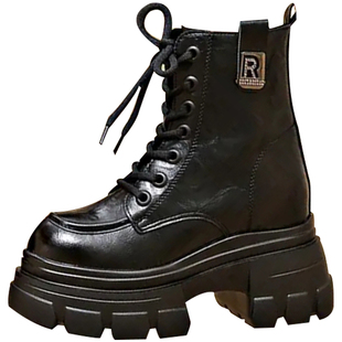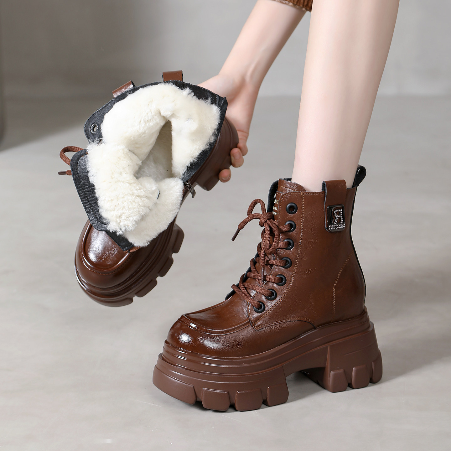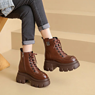 厚底内增高马丁靴 加绒加厚鞋 真皮雪地靴女羊皮毛一体2025新款 冬季