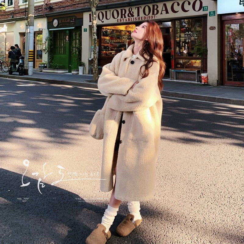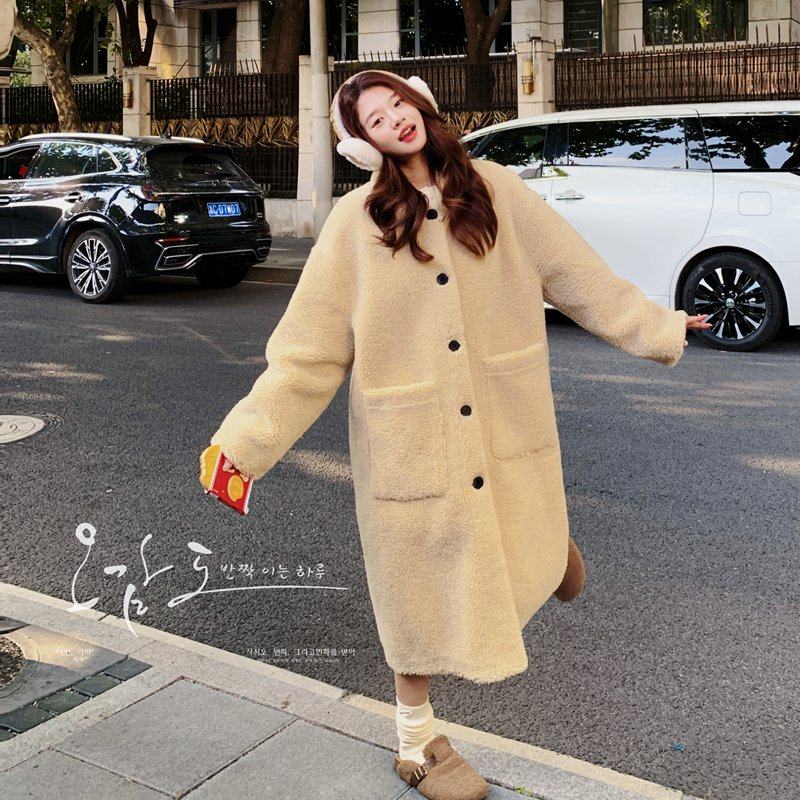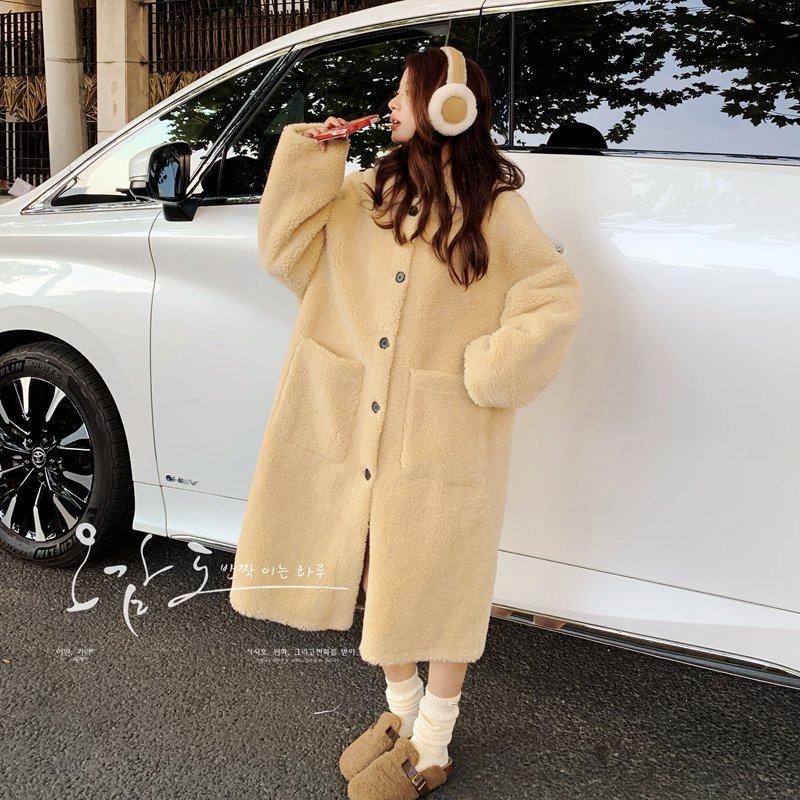 2025冬新款 大衣女 环保小湖羊皮毛一体大翻领保暖毛毛外套中长款