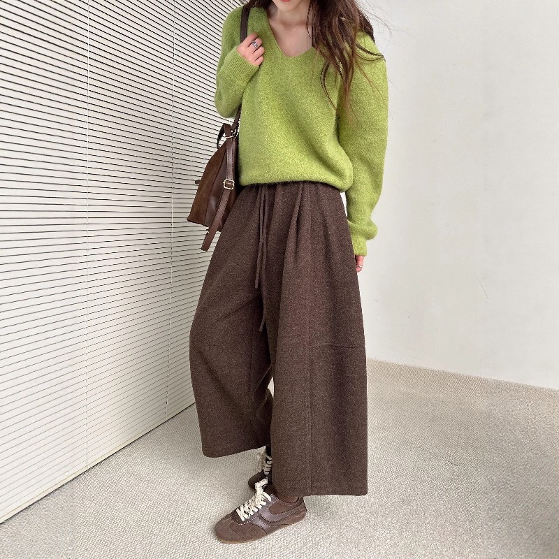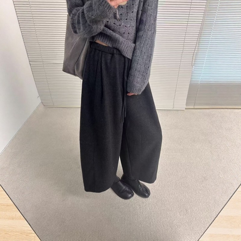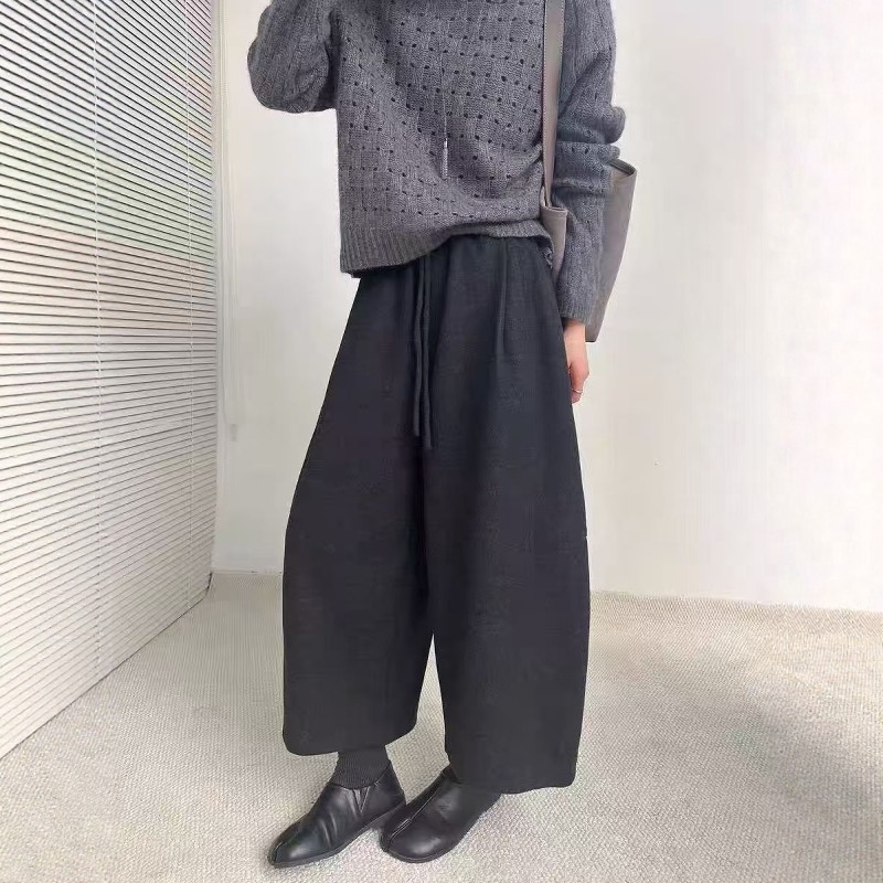 宽松显瘦小个子休闲裤 新款 女加绒加厚2025冬季 抽绳羊绒九分阔腿裤