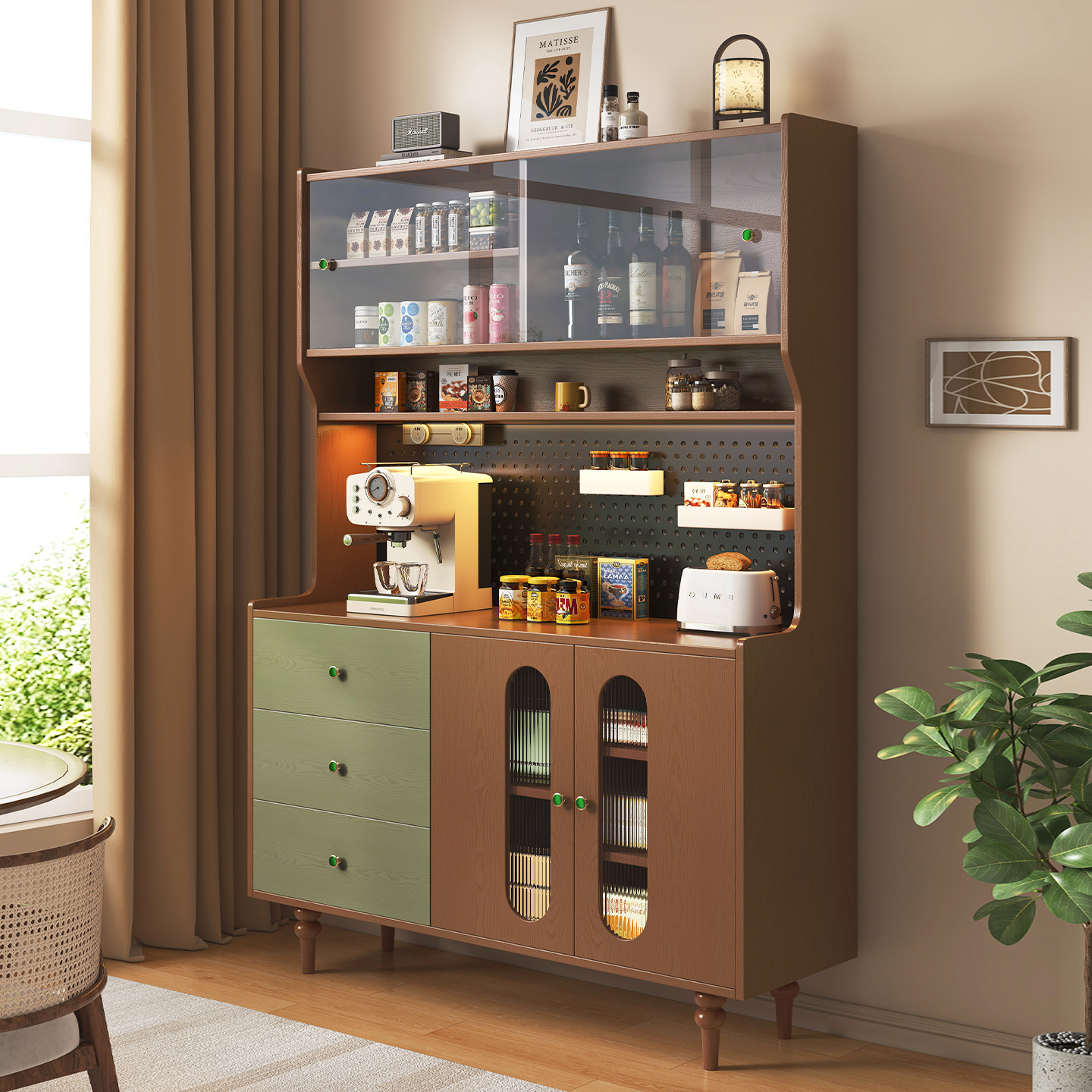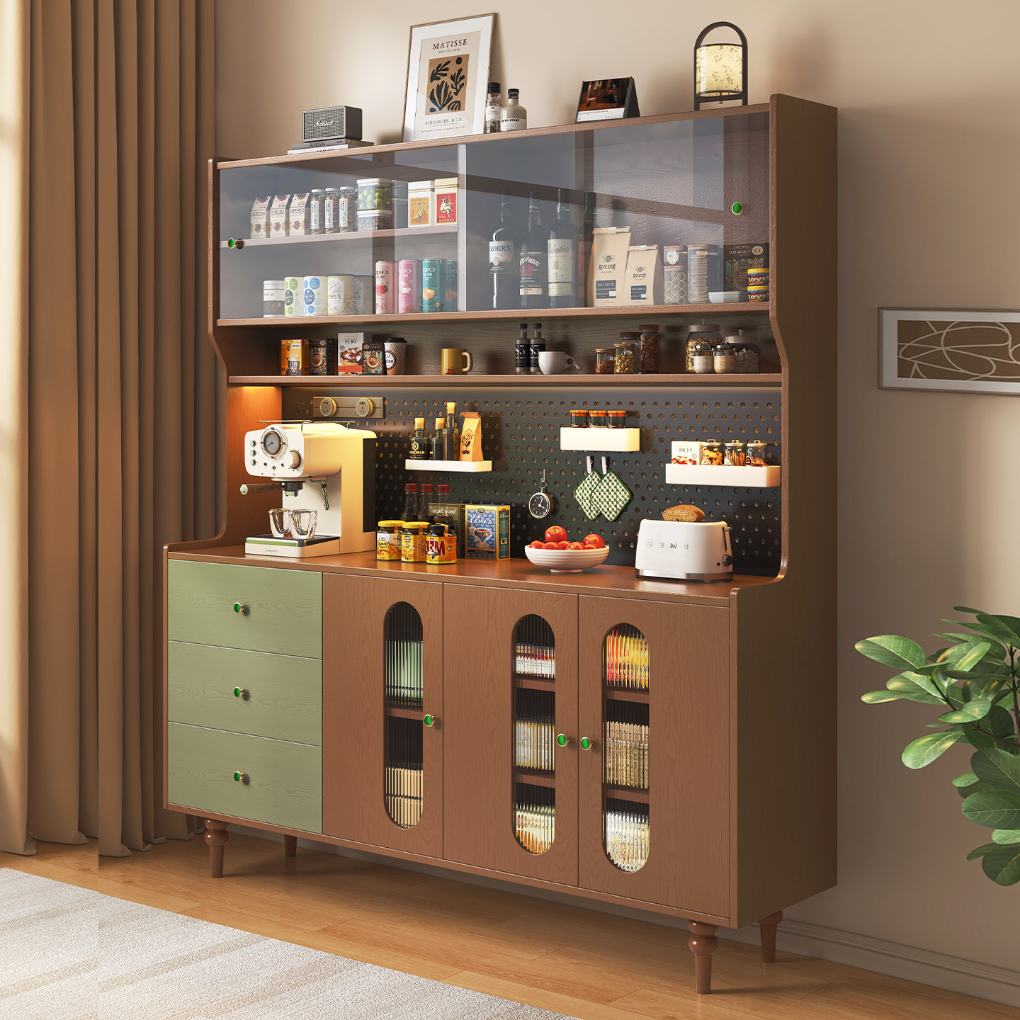 岩板实木餐边柜家用厨房落地茶水柜一体靠墙储物柜咖啡机置物柜