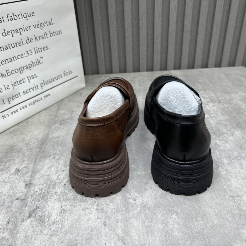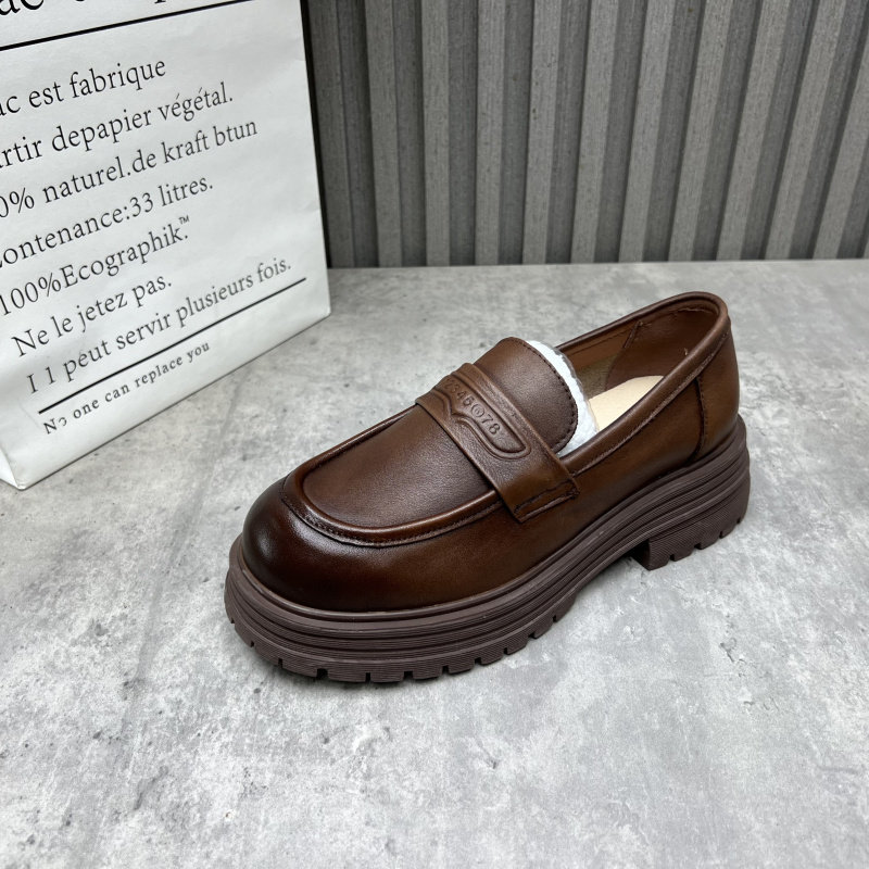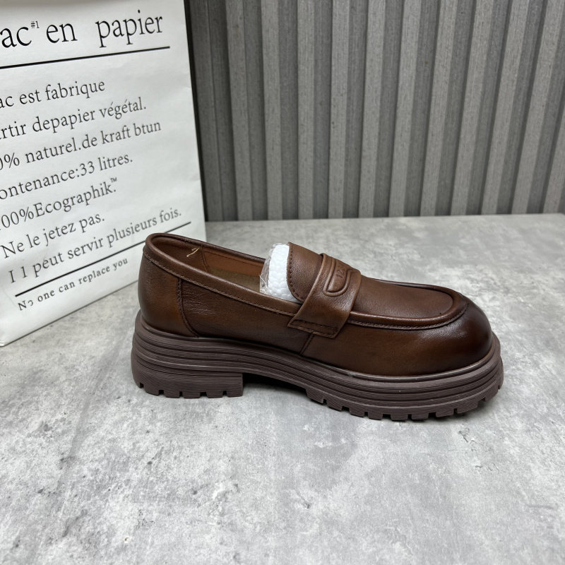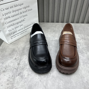 清仓断码 中跟圆头套脚女单鞋 处理真皮女鞋 新款 2025秋季 牛皮乐福鞋