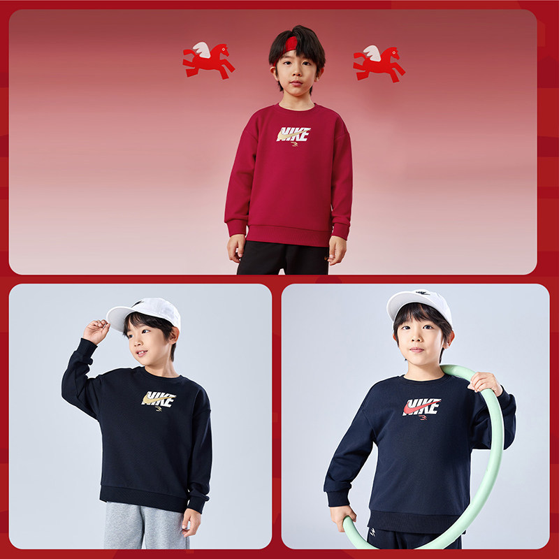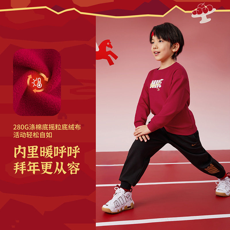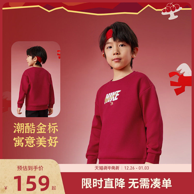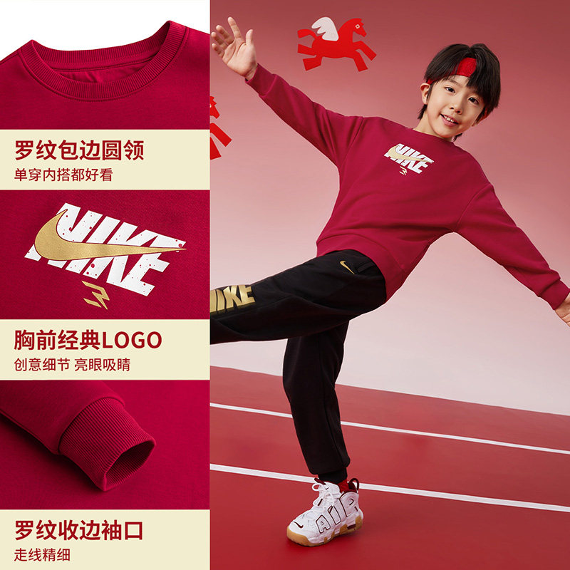 运动长袖 Nike 新款 男女童卫衣新年红色加绒上衣冬季 3brand儿童装