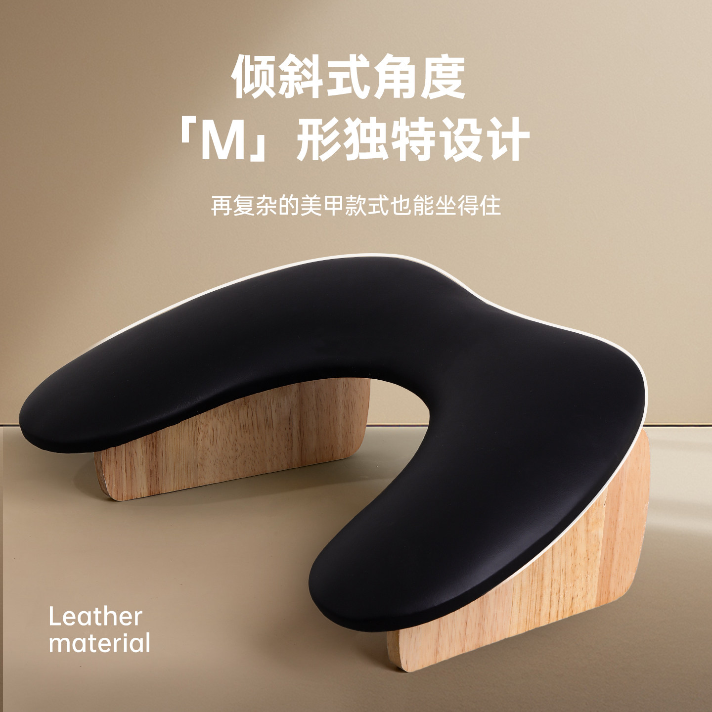 高级感黑色皮质俄式 蝴蝶U型美甲手枕可折叠美甲店柔软手托 倾斜式