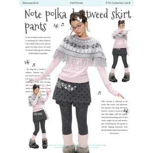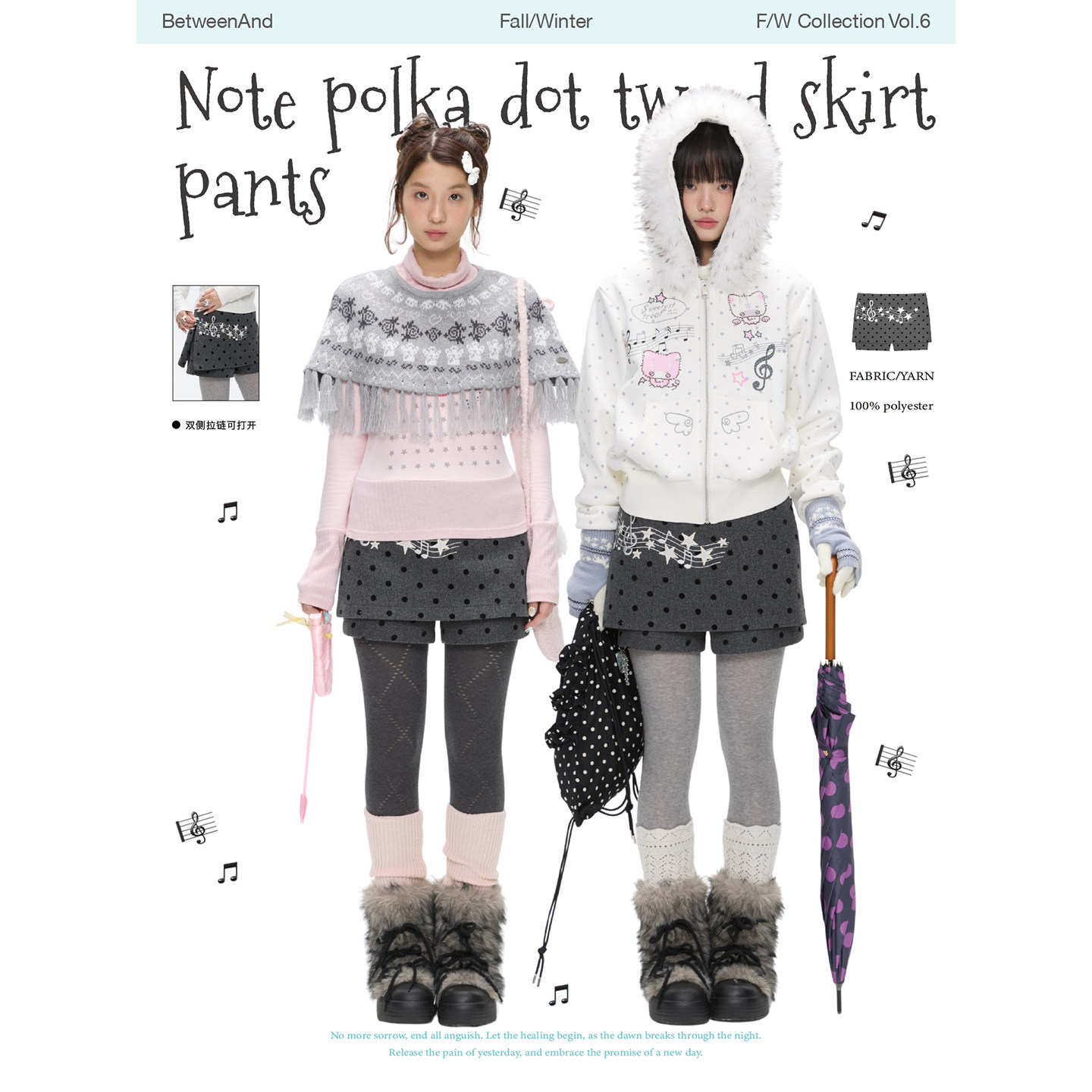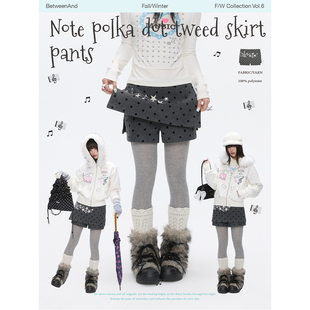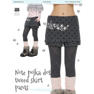 女2025新款 BETWEENAND「英伦小调」冬季 灰色音符波点毛呢加厚裙裤